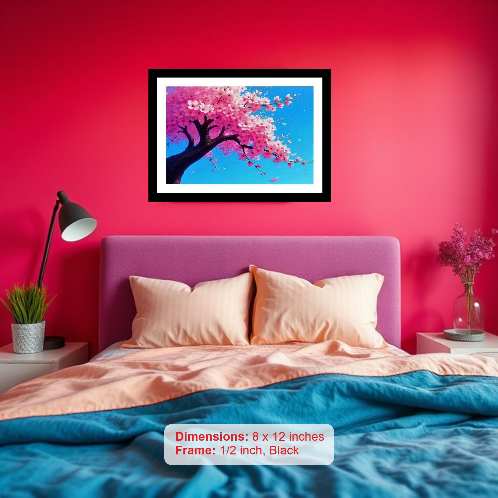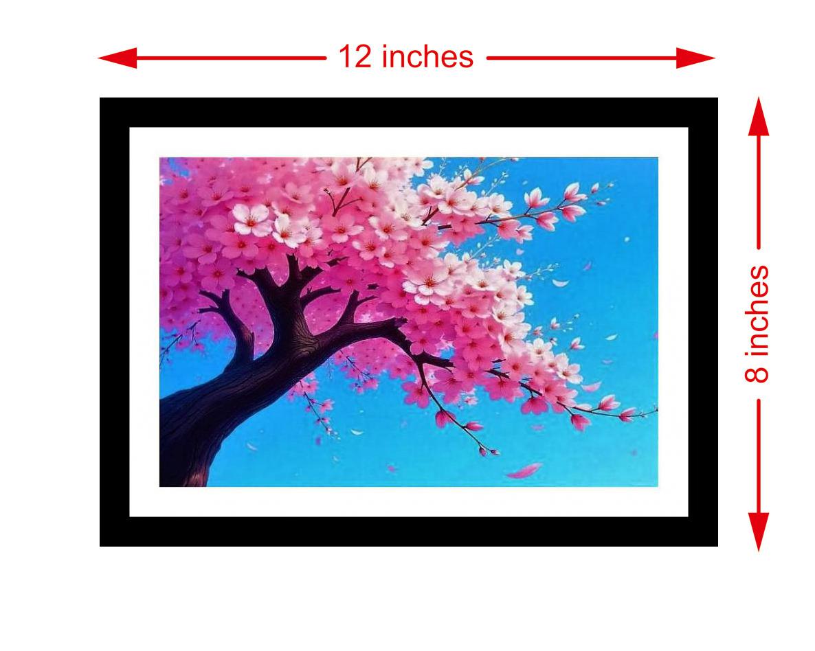 The artwork is a stunning depiction of a pink-blossomed tree against a serene blue sky! Colors are vibrant and true, print detail is crisp and captures the portrait's original beauty. The reprint's composition is stunning; the portrait's essence is perfectly captured with modern precision. Versatile Decor: Ideal for enhancing the aesthetic appeal of living rooms and bedrooms Enhanced Durability: Weather-shield laminated digital print for lasting vibrancy and protection Premium Framing: Constructed with a high-quality, durable fiber frame for long-term stability Precise Dimensions: 30 cm x 20 cm x 1 cm
