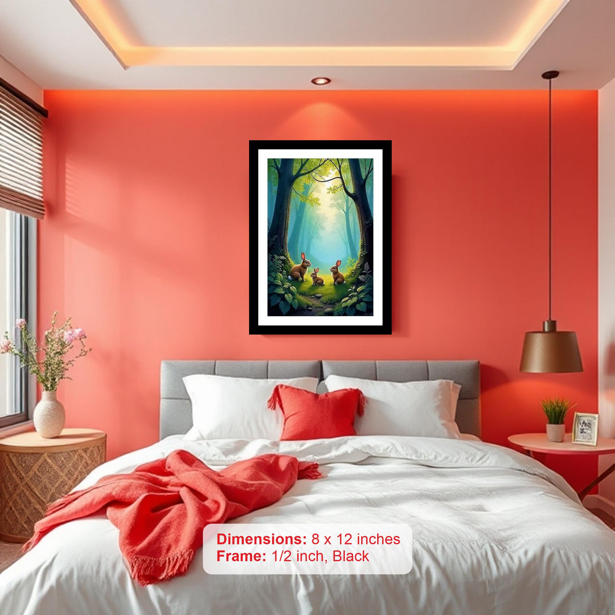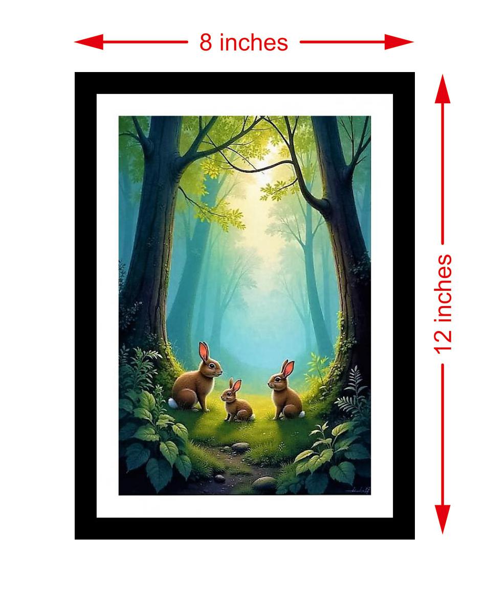 A lush, verdant jungle teeming with life and charming rabbits, beautifully rendered! The colors burst, the details pop - a stunning reprint that truly honors the original portrait's beauty. The digital reprint boasts a striking composition, flawlessly capturing the portrait's original beauty in vivid detail. Versatile Decor: Ideal for enhancing the aesthetic appeal of living rooms and bedrooms Enhanced Durability: Weather-shield laminated digital print for lasting vibrancy and protection Premium Framing: Constructed with a high-quality, durable fiber frame for long-term stability Precise Dimensions: 30 cm x 20 cm x 1 cm