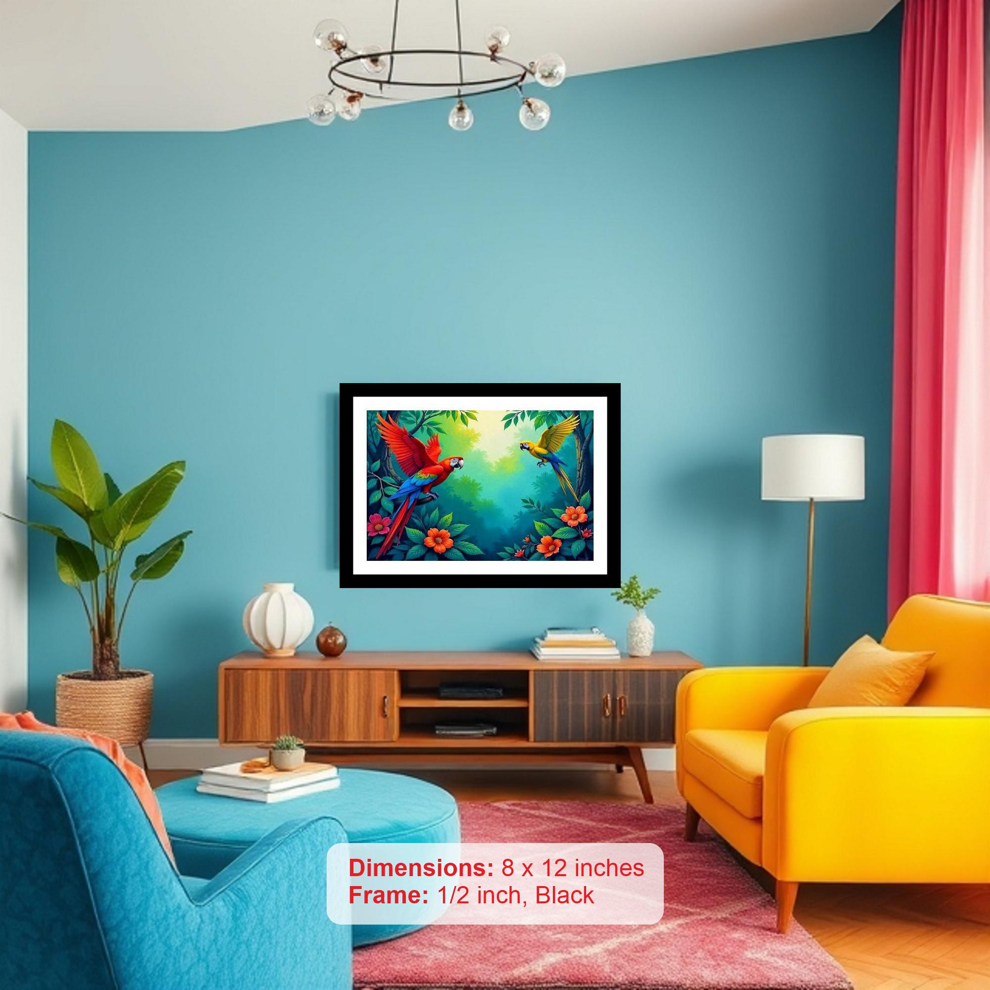Parrot Paradise: Vibrant Jungle Portrait Art Wall Art, Interior Accents, Framing Solutions, Residential/Commercial Decor, Premium Gifts | Size: 8 x 12 inches
