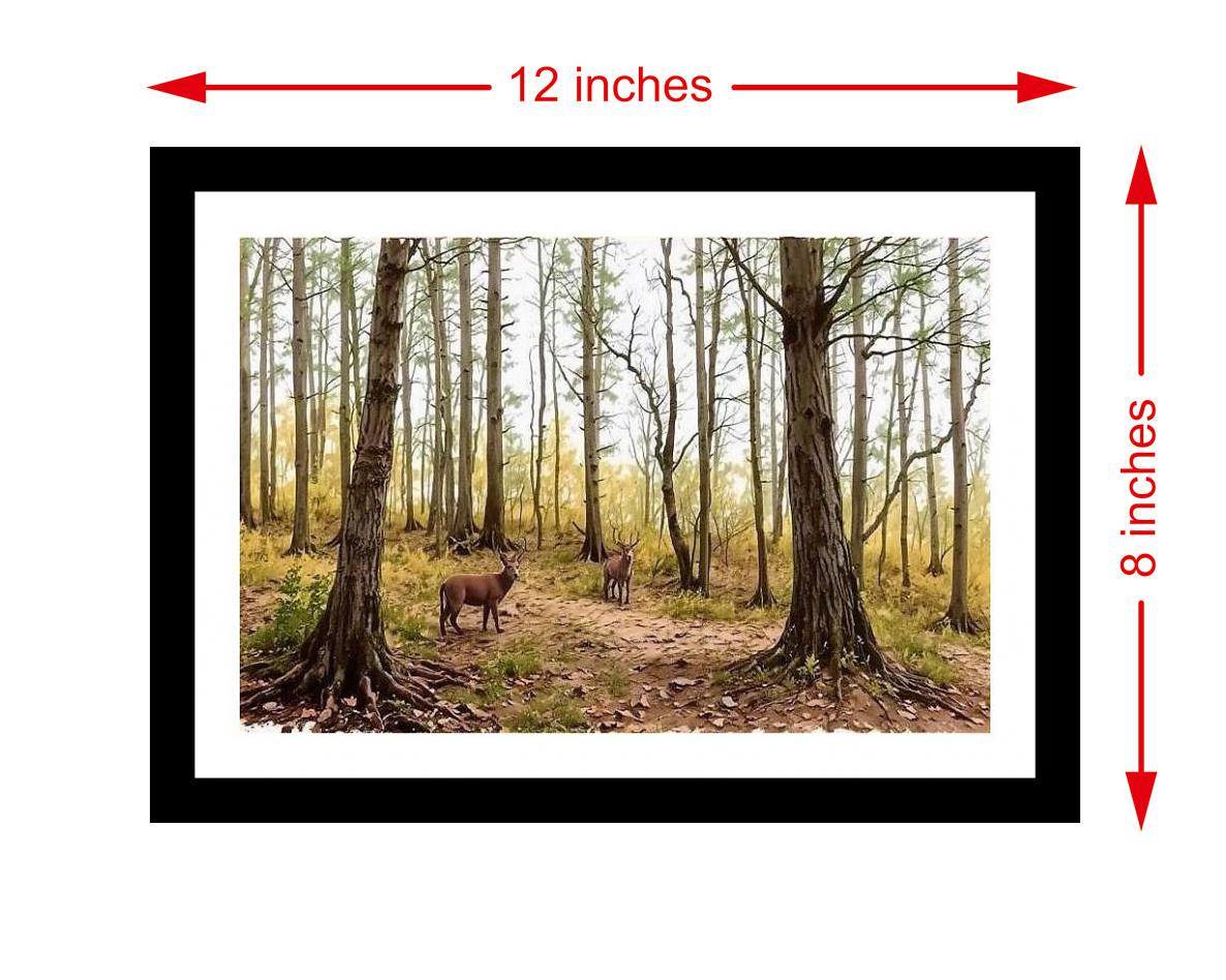 A serene portrait: distant deer grace a lush tropical forest, shedding leaves in tranquil harmony. The colors are vibrant, the print sharp, and the portrait's beauty shines through. The digital reprint beautifully captures the portrait's striking composition, breathing new life into the artwork. Versatile Decor: Ideal for enhancing the aesthetic appeal of living rooms and bedrooms Enhanced Durability: Weather-shield laminated digital print for lasting vibrancy and protection Premium Framing: Constructed with a high-quality, durable fiber frame for long-term stability Precise Dimensions: 30 cm x 20 cm x 1 cm