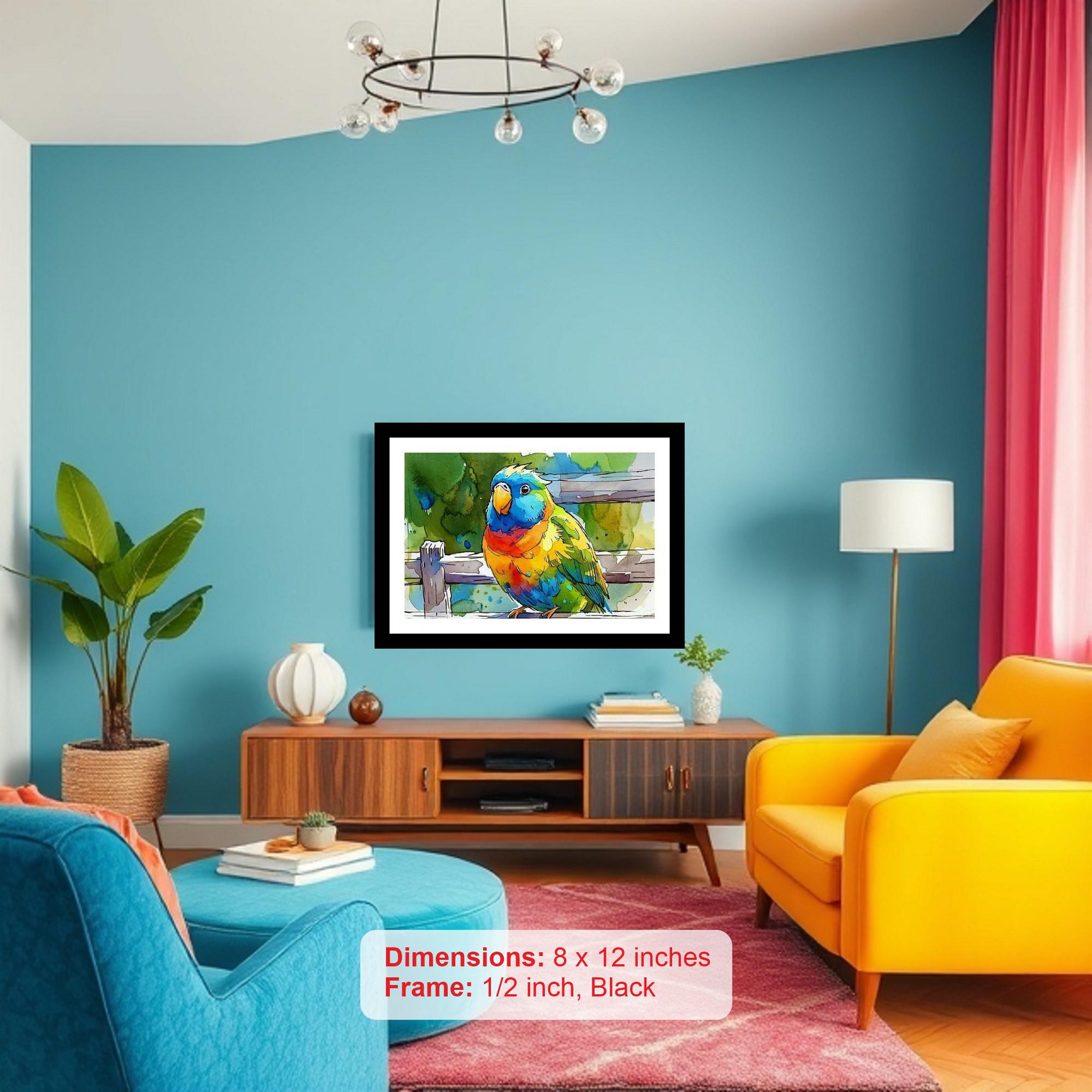 Vibrant Jungle Parrot Portrait - Serene Bird Paradise Art. Photo Frame With Photo, Wall Hanging Art, Wall Decor, Home Decor, Picture Frame | Size: 8 x 12 inches