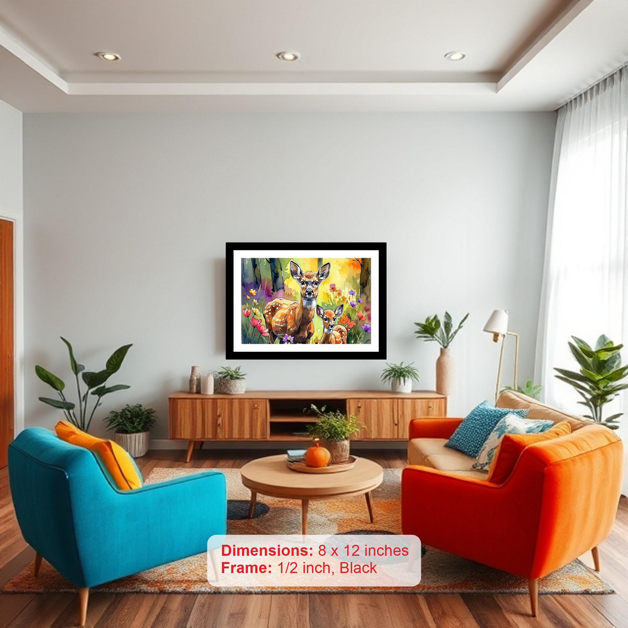 Serene Mother & Fawn: Wildflower Meadow Portrait. Photo Frame With Photo, Wall Hanging Art, Wall Decor, Home Decor, Picture Frame | Size: 8 x 12 inches