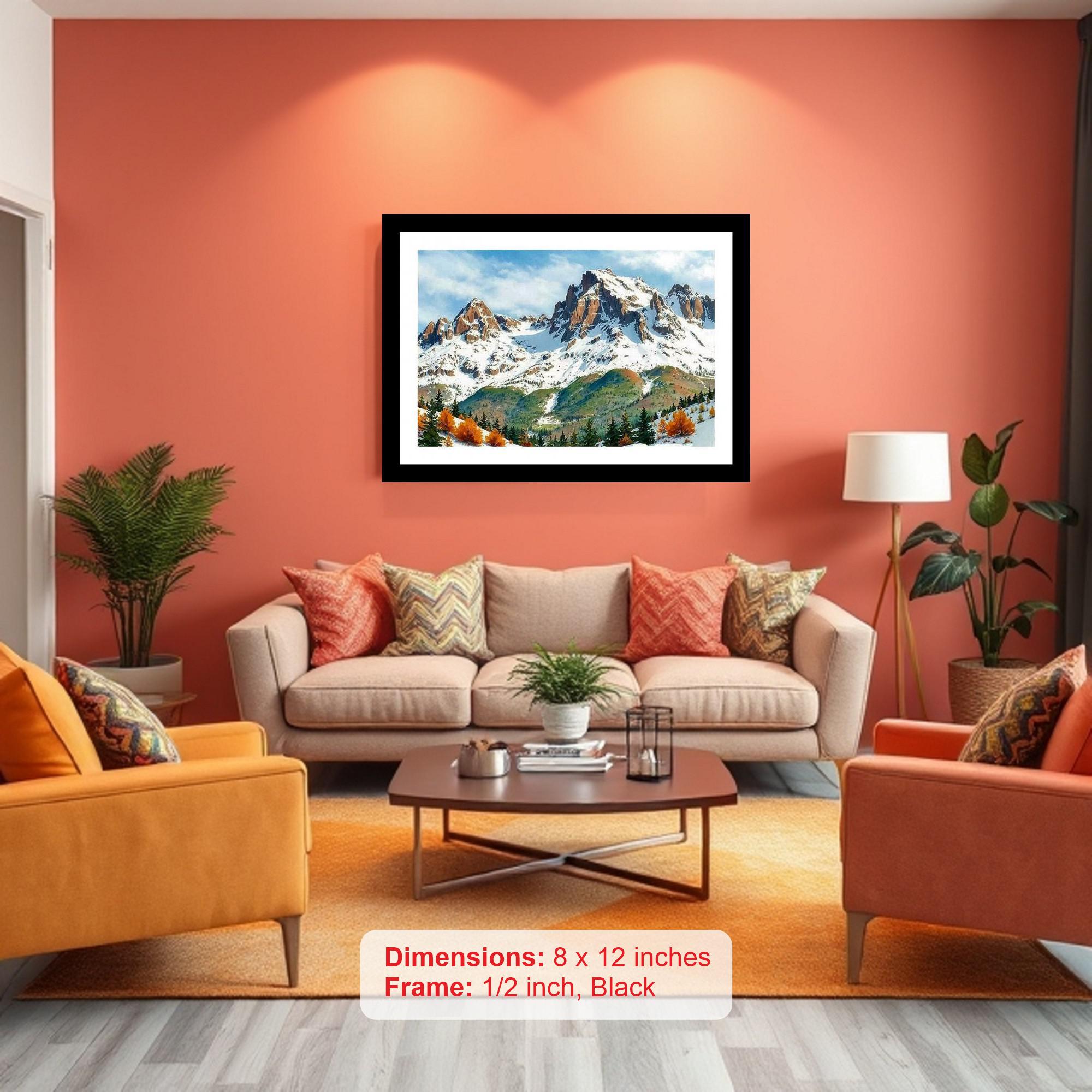 Stunning winter landscape: snow-capped peaks meet autumn's vibrant colors in a majestic view! The reprint's colors are vibrant and true, with print quality so sharp, it feels like the original portrait! The reprint's striking composition honors the original portrait beautifully, a testament to skillful digital artistry. Versatile Decor: Ideal for enhancing the aesthetic appeal of living rooms and bedrooms Enhanced Durability: Weather-shield laminated digital print for lasting vibrancy and protection Premium Framing: Constructed with a high-quality, durable fiber frame for long-term stability Precise Dimensions: 30 cm x 20 cm x 1 cm