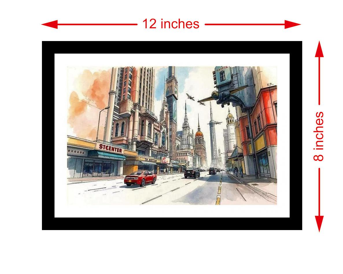 A stunning blend of retro architecture and futuristic flight creates a breathtakingly imaginative cityscape. The reprint boasts vibrant, true-to-life colors and crisp, clear details, capturing the portrait's original beauty perfectly. The reprint's striking composition beautifully honors the portrait's original artistry, a visual feast! Versatile Decor: Ideal for enhancing the aesthetic appeal of living rooms and bedrooms Enhanced Durability: Weather-shield laminated digital print for lasting vibrancy and protection Premium Framing: Constructed with a high-quality, durable fiber frame for long-term stability Precise Dimensions: 30 cm x 20 cm x 1 cm