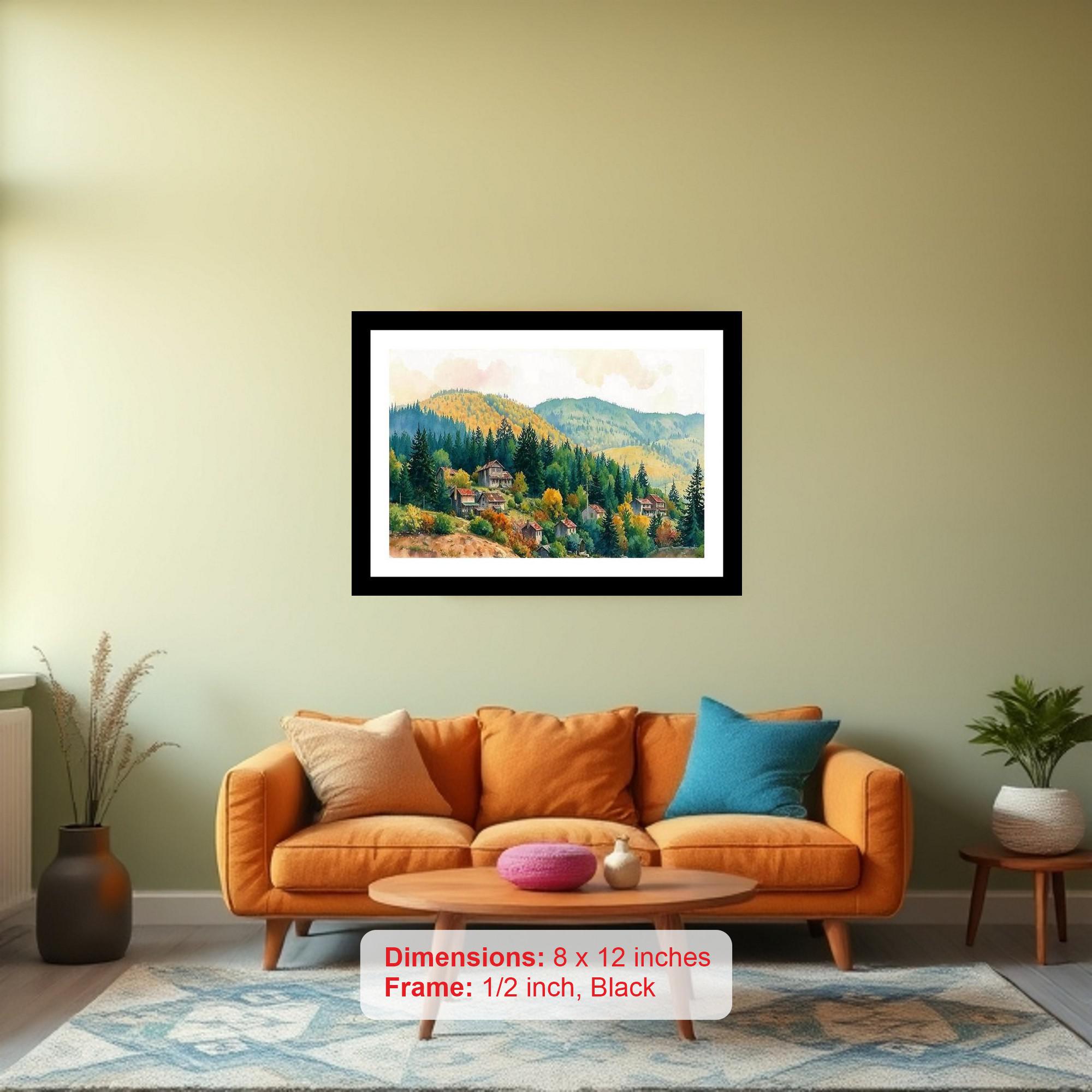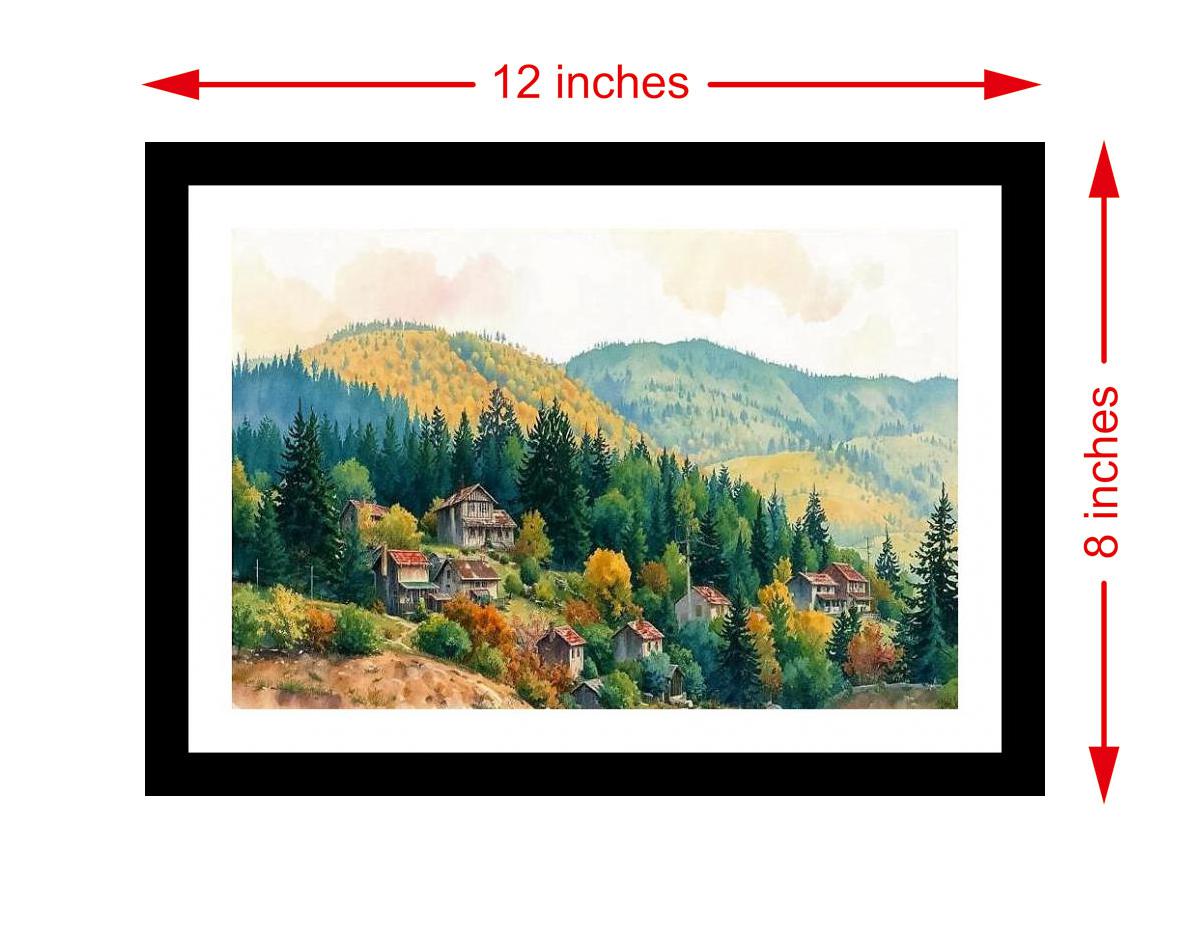 A vibrant tapestry of autumn embraces cozy hillside homes. The colors popped, the details sang - a stunning digital reprint that truly brought the portrait to life. The reprint's striking composition breathes new life into the portrait, highlighting its beauty with digital precision. Versatile Decor: Ideal for enhancing the aesthetic appeal of living rooms and bedrooms Enhanced Durability: Weather-shield laminated digital print for lasting vibrancy and protection Premium Framing: Constructed with a high-quality, durable fiber frame for long-term stability Precise Dimensions: 30 cm x 20 cm x 1 cm
