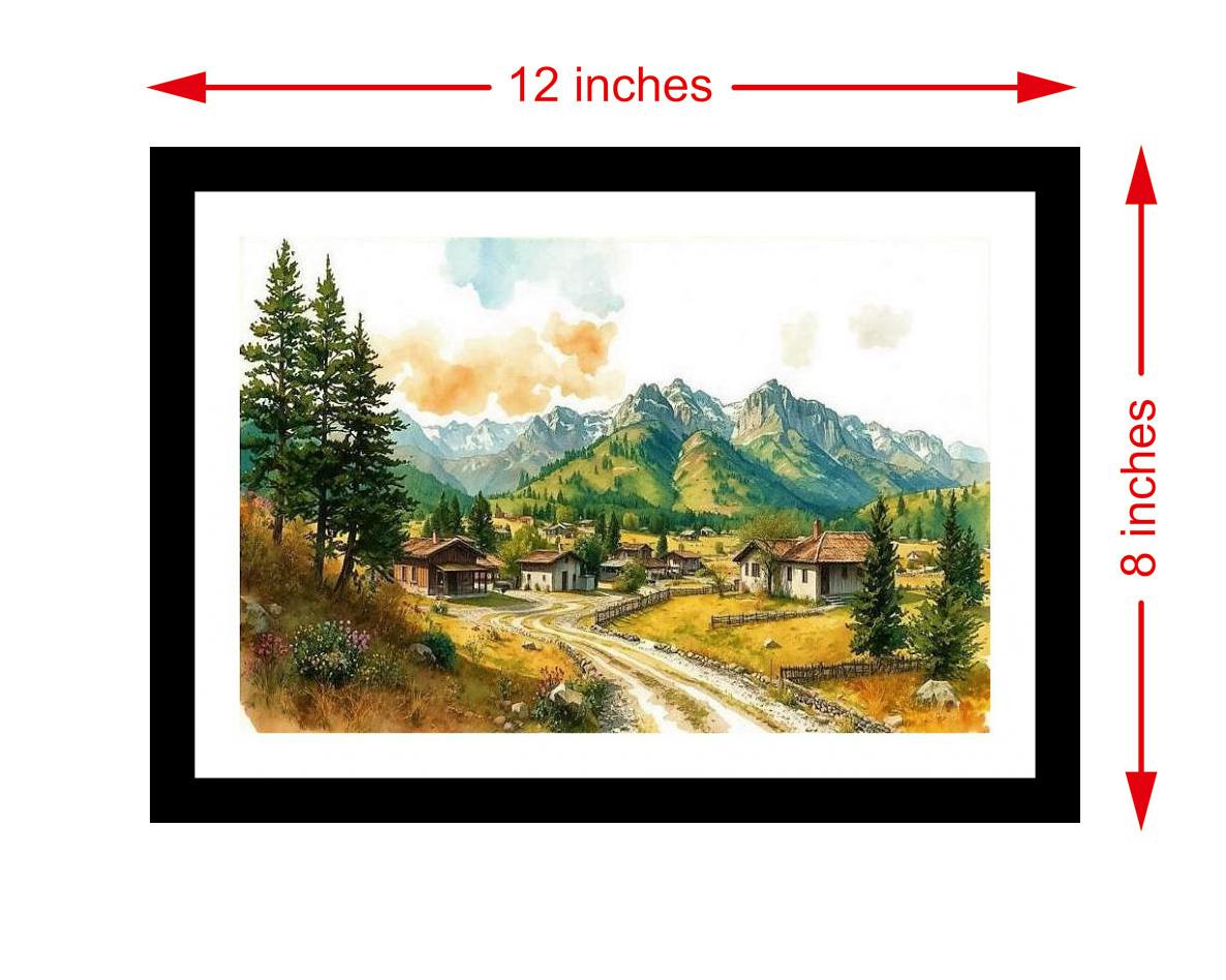 Adorn your home with timeless elegance and breathtaking scenery with our classic black Framed Digital Reprint. This stunning piece depicts a picturesque mountain village nestled serenely in a verdant valley. A winding path, bathed in soft light, invites the eye to journey deeper into the scene, eventually leading towards the majestic, snow-capped peaks that dominate the horizon. The print captures the tranquility and grandeur of nature, bringing a sense of peace and wonder to any room. Encased in a sleek, classic black frame, this artwork adds a touch of sophistication to any decor, from traditional to modern. The high-quality digital reprint ensures vibrant colors and sharp details, faithfully recreating the beauty of the original scene. Perfect for living rooms, bedrooms, offices, or hallways, this framed print is more than just wall decor; it's a window to a serene and inspiring landscape, a constant reminder of the beauty and majesty of the natural world. It's a perfect gift for art lovers, nature enthusiasts, or anyone who appreciates a touch of classic charm.