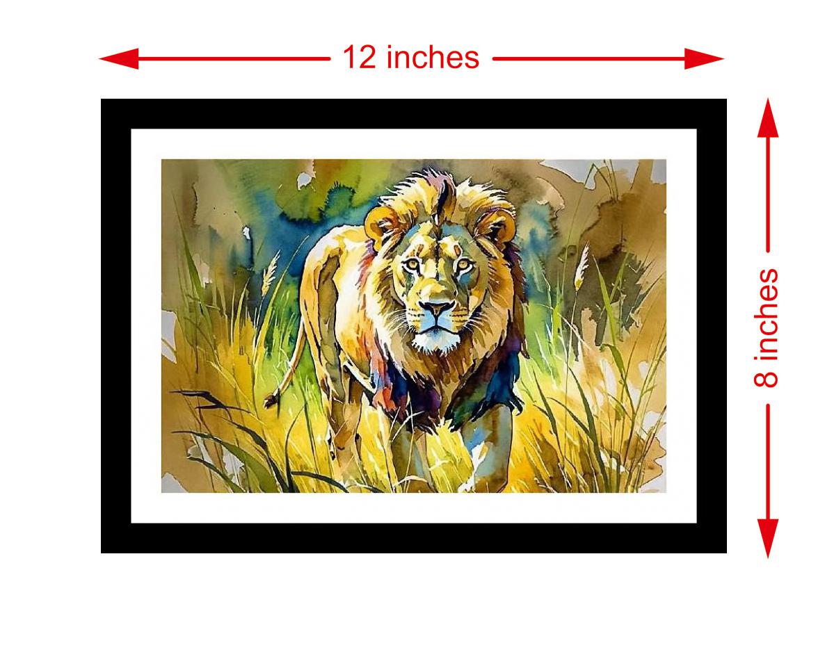 A powerful lion, rendered with captivating intensity, dominates the tall grass in a majestic display of unwavering strength. Colors pop, details are crisp, and the portrait's beauty shines anew. The portrait's digital reprint boasts a striking composition, flawlessly capturing the original's beauty and depth. Versatile Decor: Ideal for enhancing the aesthetic appeal of living rooms and bedrooms Enhanced Durability: Weather-shield laminated digital print for lasting vibrancy and protection Premium Framing: Constructed with a high-quality, durable fiber frame for long-term stability Precise Dimensions: 30 cm x 20 cm x 1 cm