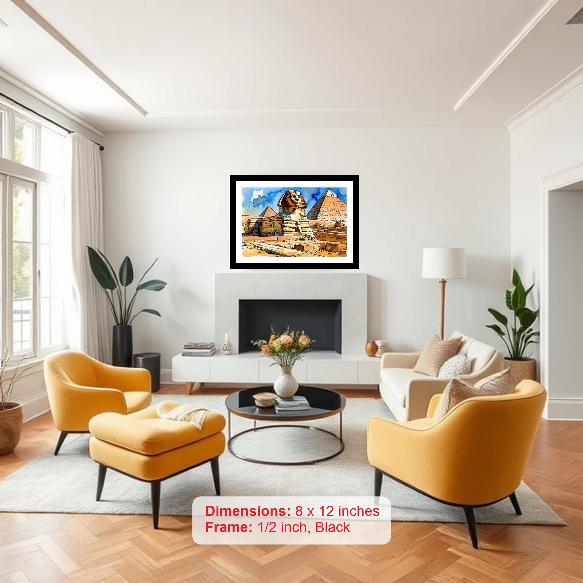 Sphinx Guardian: Vibrant Pyramid Portrait Wall Art, Interior Accents, Framing Solutions, Residential/Commercial Decor, Premium Gifts | Size: 8 x 12 inches