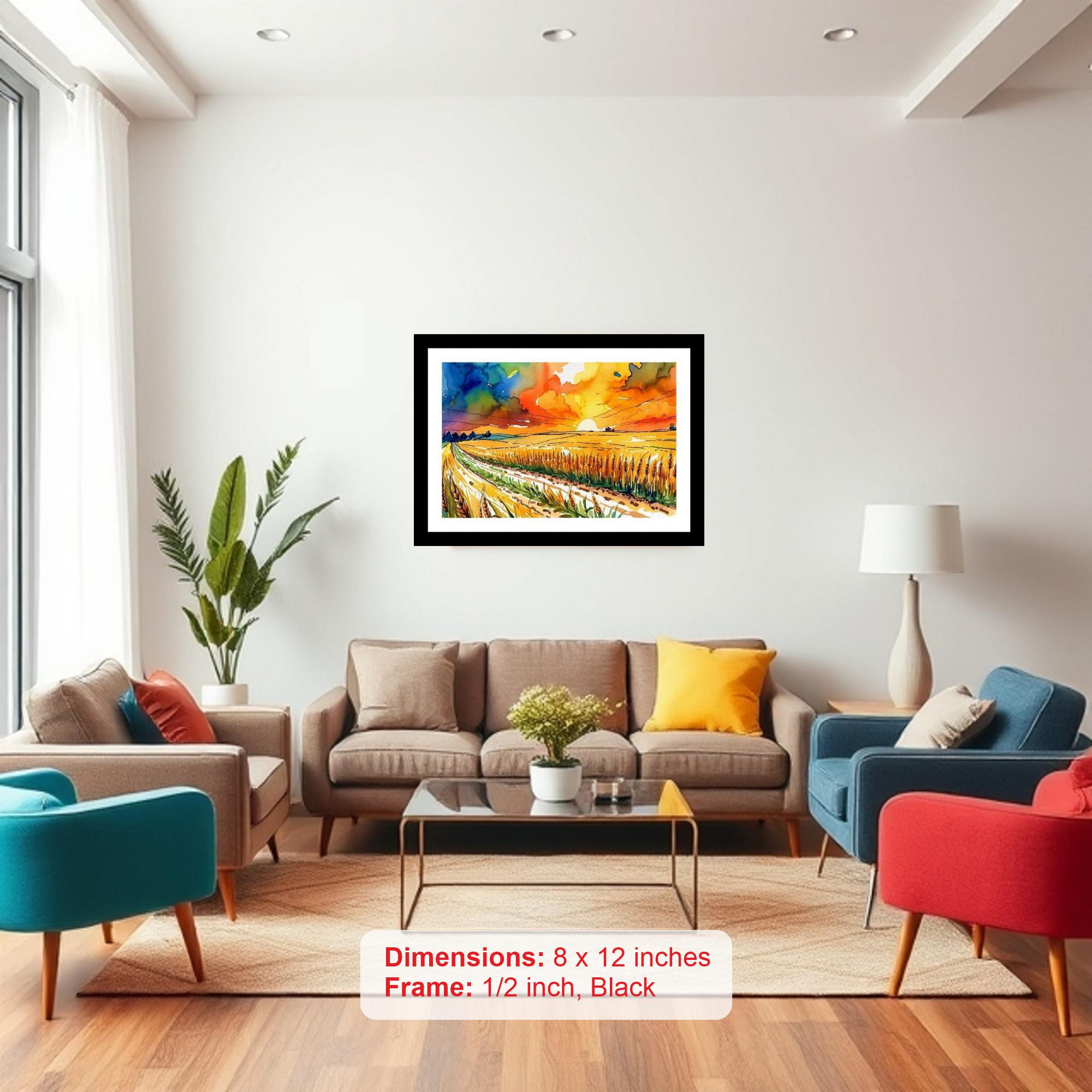 Golden sunset bathes a wheat field & road, a vibrant masterpiece of rural beauty! The reprint bursts with vibrant color and exquisite detail, truly capturing the portrait's original beauty. The digital reprint boasts striking composition, breathing new life into the portrait's timeless beauty. Versatile Decor: Ideal for enhancing the aesthetic appeal of living rooms and bedrooms Enhanced Durability: Weather-shield laminated digital print for lasting vibrancy and protection Premium Framing: Constructed with a high-quality, durable fiber frame for long-term stability Precise Dimensions: 30 cm x 20 cm x 1 cm