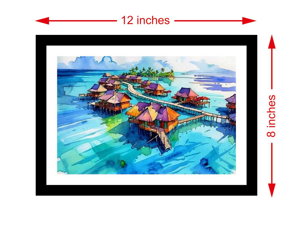 Stunning tropical art! Boardwalk bungalows offer ultimate paradise vibes, a vibrant escape captured beautifully. The reprint's colors burst with life, and the print captures every delicate detail of the portrait - stunning! The digital reprint's striking composition beautifully captures the portrait's essence. A stunning visual experience! Versatile Decor: Ideal for enhancing the aesthetic appeal of living rooms and bedrooms Enhanced Durability: Weather-shield laminated digital print for lasting vibrancy and protection Premium Framing: Constructed with a high-quality, durable fiber frame for long-term stability Precise Dimensions: 30 cm x 20 cm x 1 cm