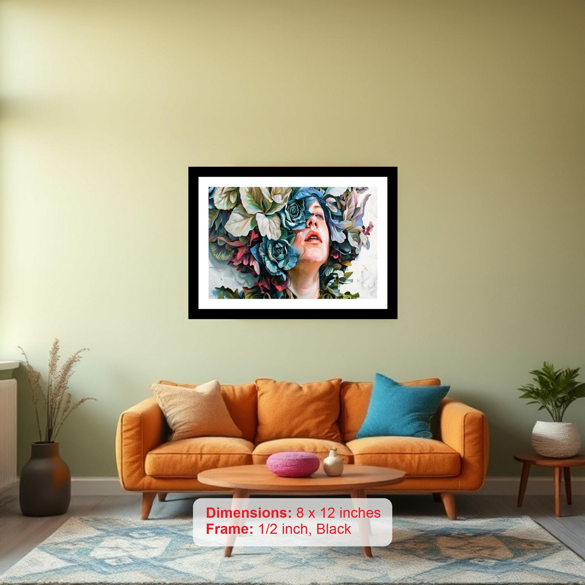 Floral Portrait: Woman in Bloom Art Print Wall Art, Interior Accents, Framing Solutions, Residential/Commercial Decor, Premium Gifts | Size: 8 x 12 inches