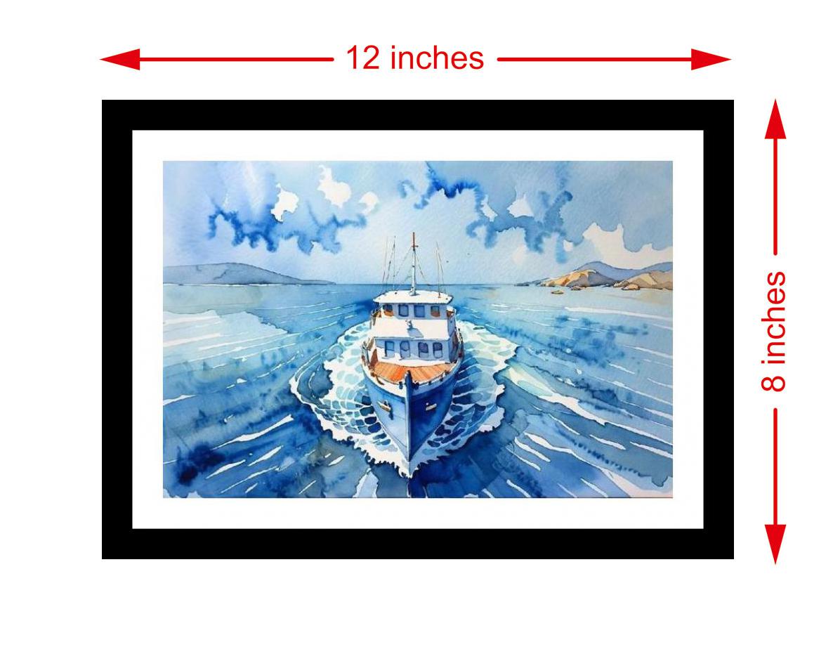 A vibrant painting captures the essence of a blue boat sailing on turquoise waters under a bright sky. The reprint's colors are vibrant and the print quality is so sharp, it feels like the original portrait. The digital reprint boasts a strikingly composed portrait, preserving its beauty with impeccable clarity. Versatile Decor: Ideal for enhancing the aesthetic appeal of living rooms and bedrooms Enhanced Durability: Weather-shield laminated digital print for lasting vibrancy and protection Premium Framing: Constructed with a high-quality, durable fiber frame for long-term stability Precise Dimensions: 30 cm x 20 cm x 1 cm