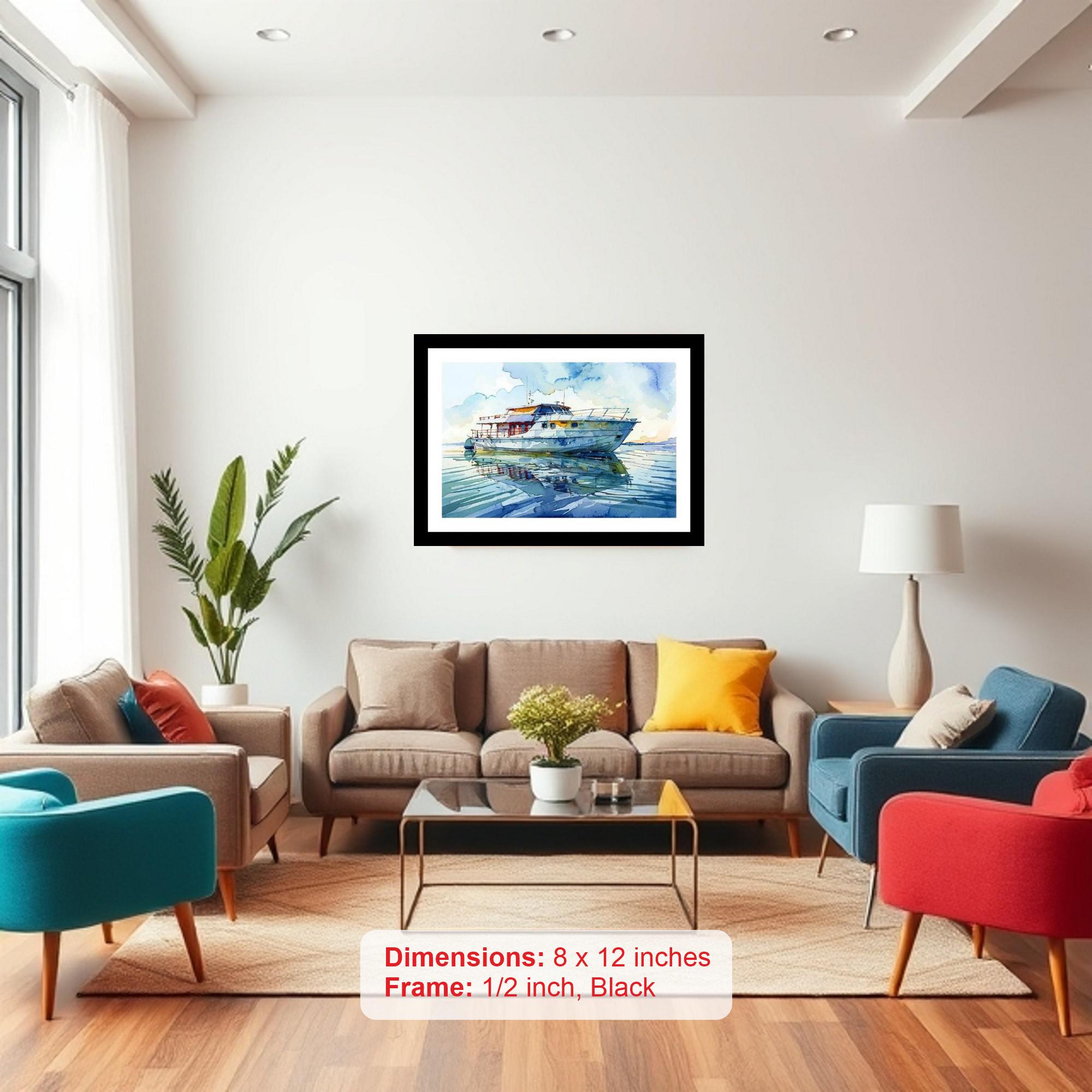 A tranquil masterpiece: Weathered yacht rests on calm waters, mirrored in a serene sky, a vision of peaceful beauty. Colors are vibrant, print is sharp, capturing every detail of the beautiful portrait. The reprint's striking composition breathes new life into the portrait, a testament to masterful digital artistry. Versatile Decor: Ideal for enhancing the aesthetic appeal of living rooms and bedrooms Enhanced Durability: Weather-shield laminated digital print for lasting vibrancy and protection Premium Framing: Constructed with a high-quality, durable fiber frame for long-term stability Precise Dimensions: 30 cm x 20 cm x 1 cm