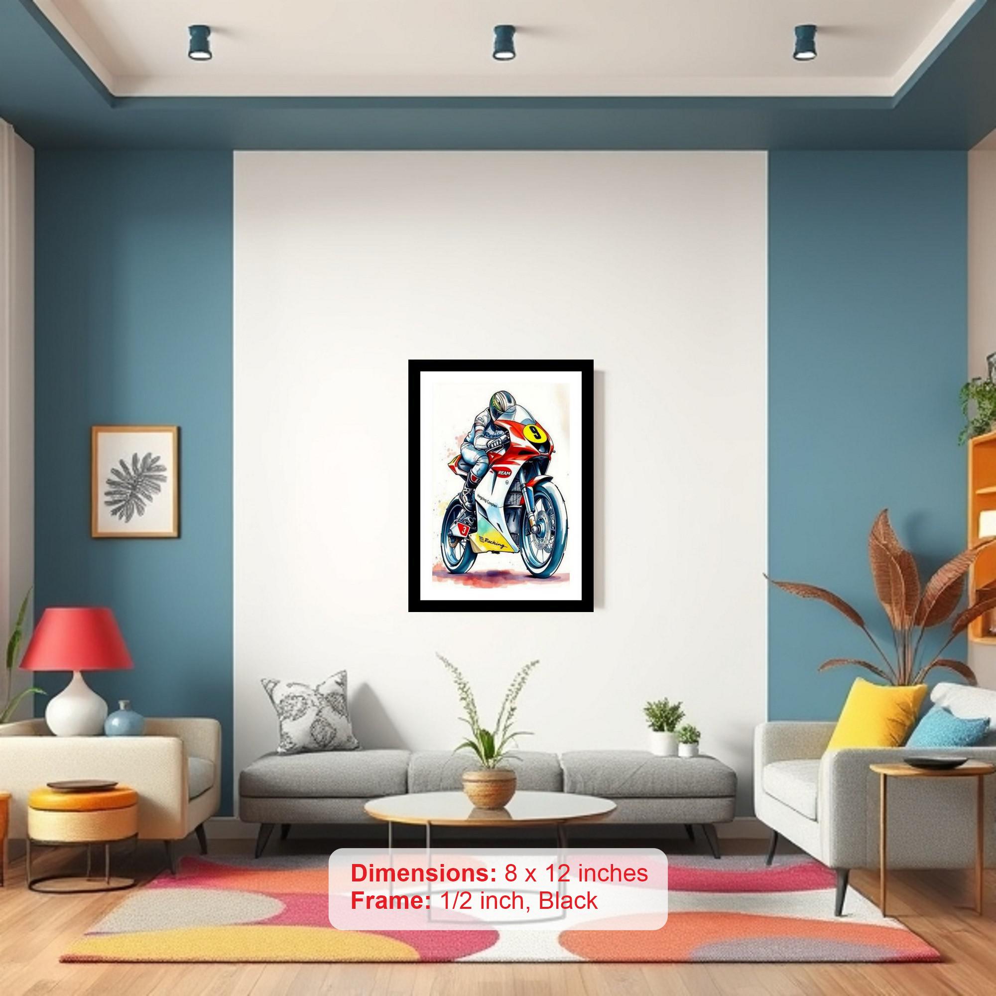 Racer's Roar: Vibrant Motorcycle Portrait Art Wall Art, Interior Accents, Framing Solutions, Residential/Commercial Decor, Premium Gifts | Size: 8 x 12 inches