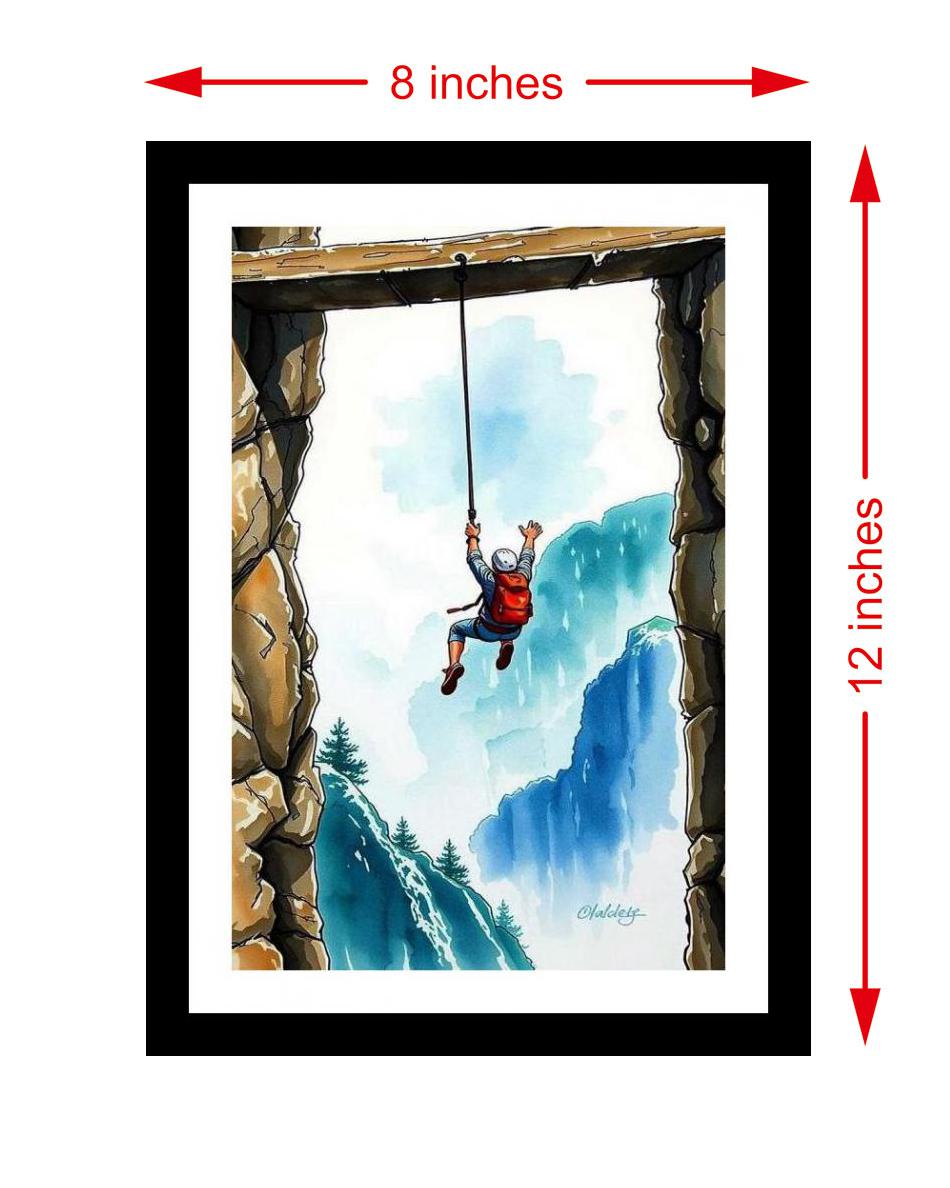 A breathtaking plunge captured: a climber's thrilling descent against a majestic mountain backdrop! The reprint's color vibrancy and print clarity truly captured the portrait's original beauty. The digital reprint boasts a striking composition, breathing new life into the portrait's timeless beauty. Versatile Decor: Ideal for enhancing the aesthetic appeal of living rooms and bedrooms Enhanced Durability: Weather-shield laminated digital print for lasting vibrancy and protection Premium Framing: Constructed with a high-quality, durable fiber frame for long-term stability Precise Dimensions: 30 cm x 20 cm x 1 cm