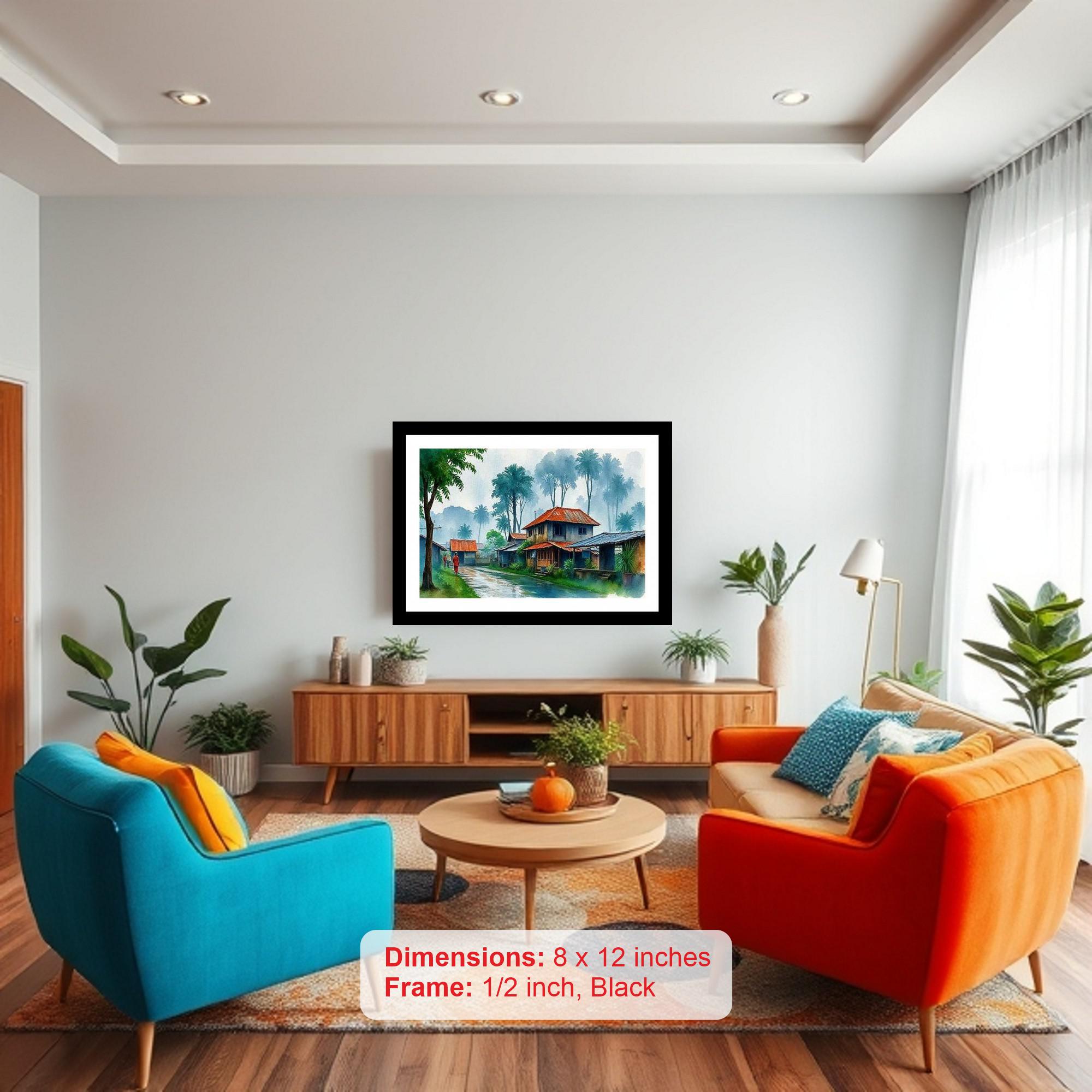 A rain-kissed village street glows with life as villagers stroll home in this tranquil and captivating scene. The colors pop and the print captures every detail of the portrait beautifully. The portrait's digital reprint boasts a stunning composition, beautifully capturing the subject's essence. Versatile Decor: Ideal for enhancing the aesthetic appeal of living rooms and bedrooms Enhanced Durability: Weather-shield laminated digital print for lasting vibrancy and protection Premium Framing: Constructed with a high-quality, durable fiber frame for long-term stability Precise Dimensions: 30 cm x 20 cm x 1 cm