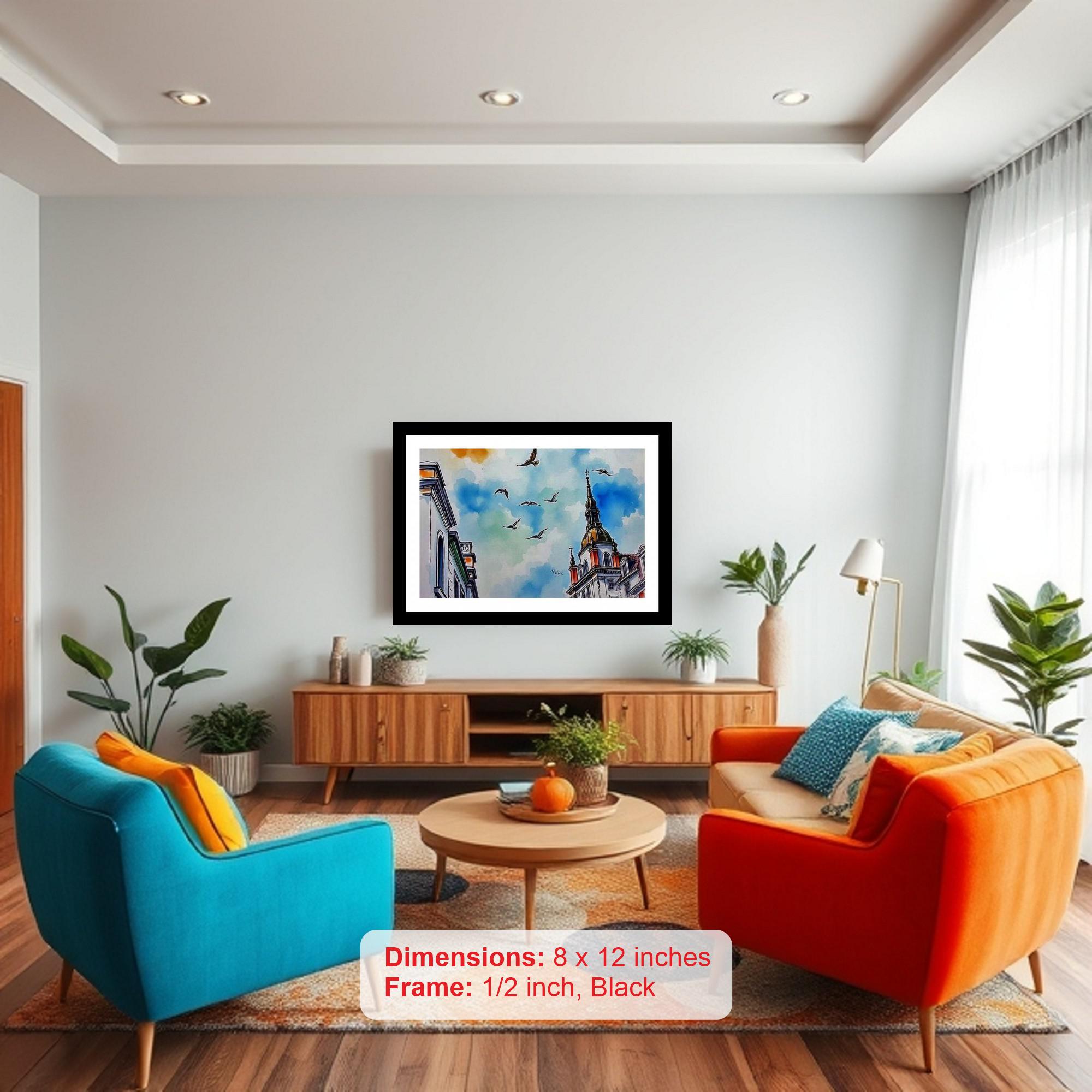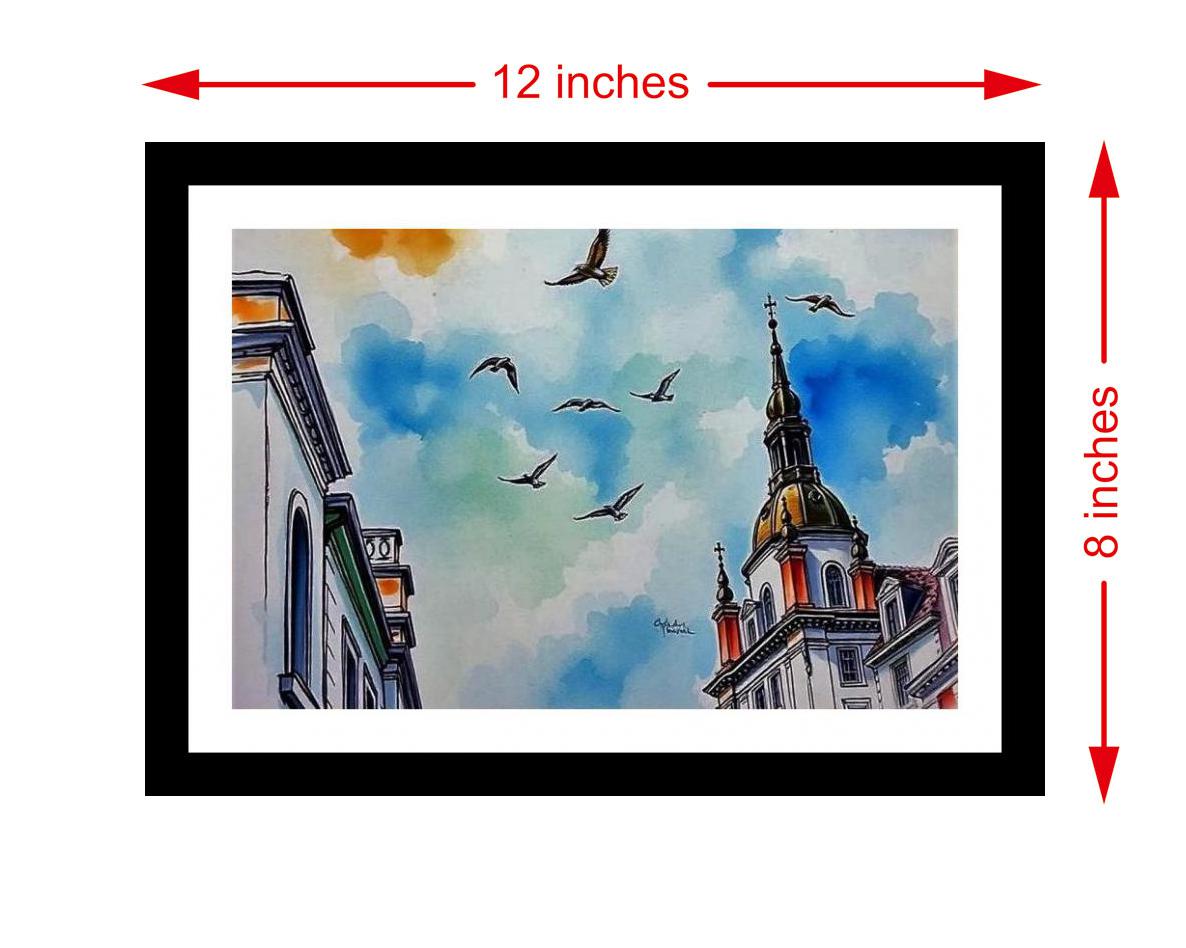 Soaring birds and a steeple pierce a vibrant sky, a beautiful urban-nature harmony. The reprint perfectly captures the portrait's original vibrant colors and crisp details, a true visual delight. The digital reprint boasts a striking composition, perfectly capturing the portrait's original beauty and depth. Versatile Decor: Ideal for enhancing the aesthetic appeal of living rooms and bedrooms Enhanced Durability: Weather-shield laminated digital print for lasting vibrancy and protection Premium Framing: Constructed with a high-quality, durable fiber frame for long-term stability Precise Dimensions: 30 cm x 20 cm x 1 cm