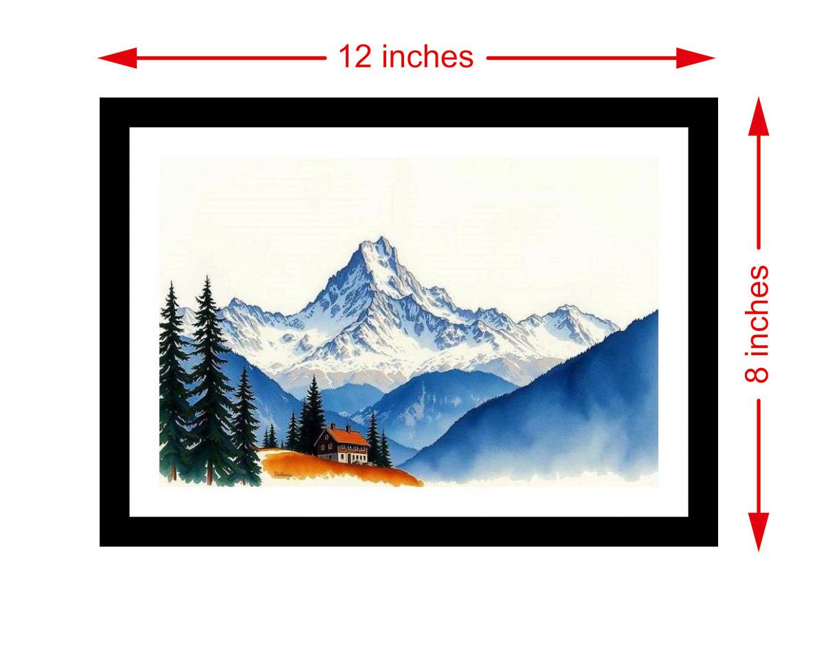 Charming chalet artwork! Majestic mountains & cozy scene create a warm, inviting escape. Colors are vibrant, print is crisp, and the portrait's beauty shines through anew. The digital reprint boasts a strikingly composed portrait, capturing the original's beauty with stunning clarity. Versatile Decor: Ideal for enhancing the aesthetic appeal of living rooms and bedrooms Enhanced Durability: Weather-shield laminated digital print for lasting vibrancy and protection Premium Framing: Constructed with a high-quality, durable fiber frame for long-term stability Precise Dimensions: 30 cm x 20 cm x 1 cm