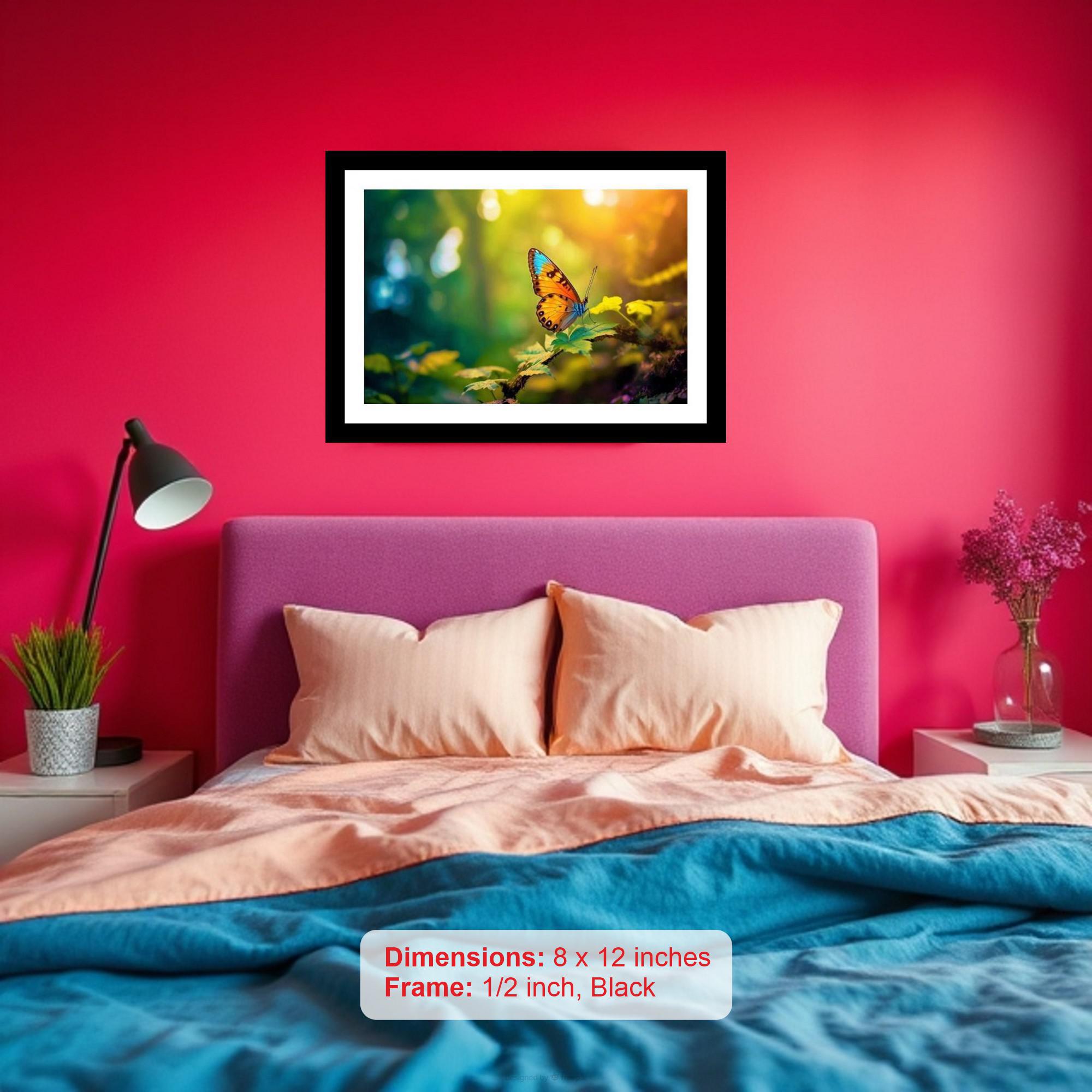 Sun-drenched butterfly on leaf: a vibrant, perfect moment captured in stunning natural light. Colors pop, print is crisp and clear - the photo's beauty truly shines through again. The digital reprint boasts a striking composition, breathing new life into the photograph's original beauty. Versatile Decor: Ideal for enhancing the aesthetic appeal of living rooms and bedrooms Enhanced Durability: Weather-shield laminated digital print for lasting vibrancy and protection Premium Framing: Constructed with a high-quality, durable fiber frame for long-term stability Precise Dimensions: 30 cm x 20 cm x 1 cm