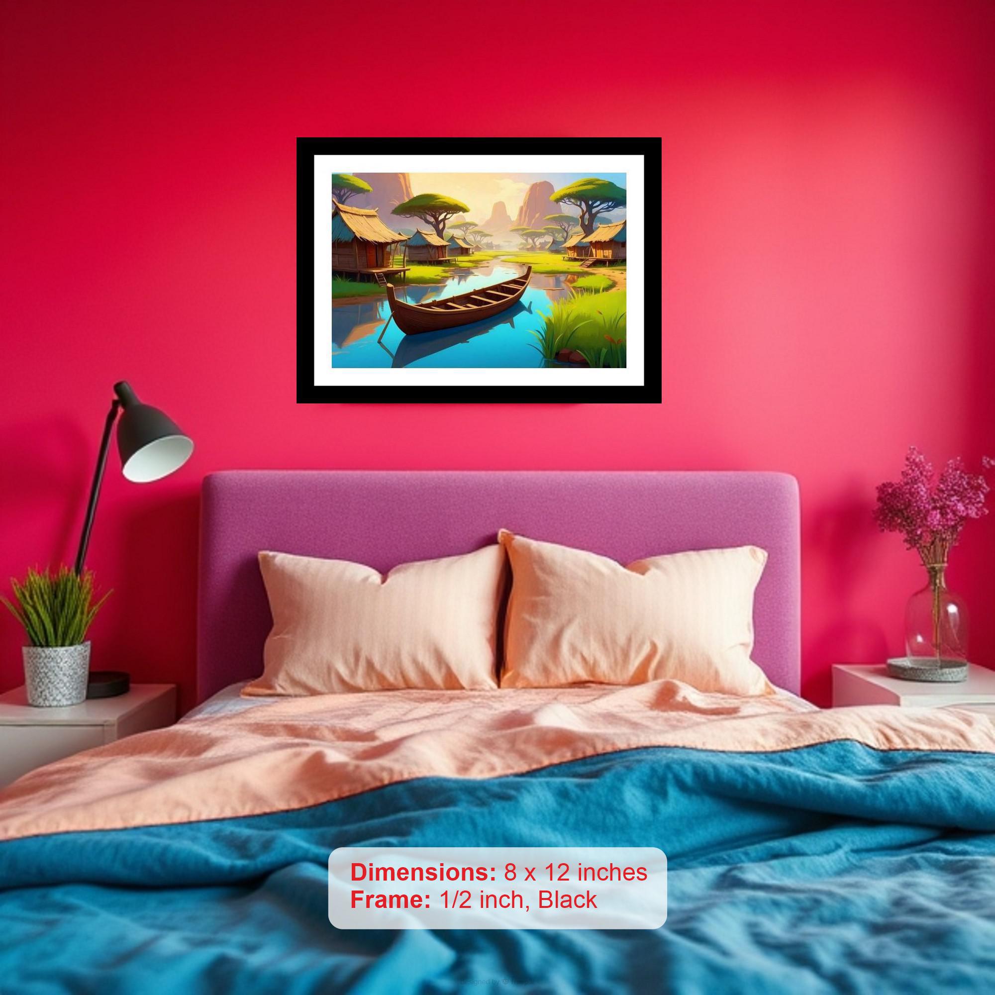 A peaceful village by a calm river, captured beautifully with a lonely boat for added serenity. The reprint's vibrant colors and crisp detail truly bring this beautiful portrait back to life! Stunning quality. The reprint's composition is stunning! The portrait's essence shines anew with masterful digital artistry. Versatile Decor: Ideal for enhancing the aesthetic appeal of living rooms and bedrooms Enhanced Durability: Weather-shield laminated digital print for lasting vibrancy and protection Premium Framing: Constructed with a high-quality, durable fiber frame for long-term stability Precise Dimensions: 30 cm x 20 cm x 1 cm