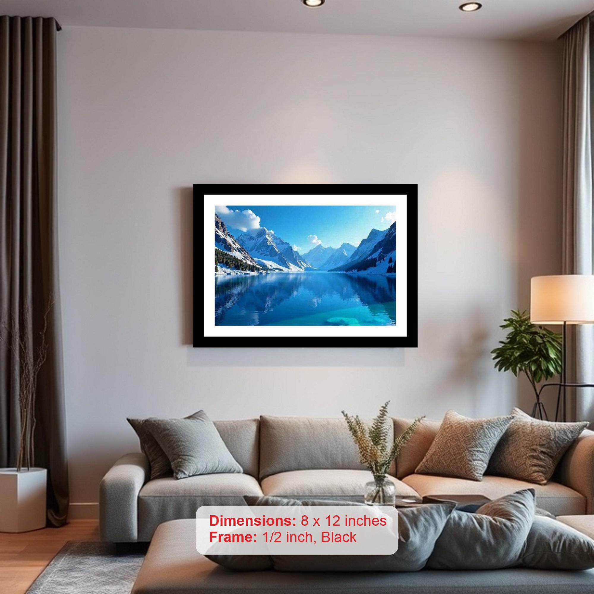 Transform your space with our classic black Framed Winter Wonderland Print. This elegant digital reprint captures a serene scene of snow-capped mountains mirrored in a crystal-clear lake. The photograph, digitally enhanced for optimal clarity, is encased in a vintage-style black frame, adding a touch of timeless sophistication to any room. Perfect for living rooms, bedrooms, or offices, this art piece evokes a sense of calm and tranquility, bringing the beauty of winter indoors. Its classic aesthetic complements various decor styles, making it a versatile addition to your art collection. Enjoy the beauty of a pristine winter landscape every day!