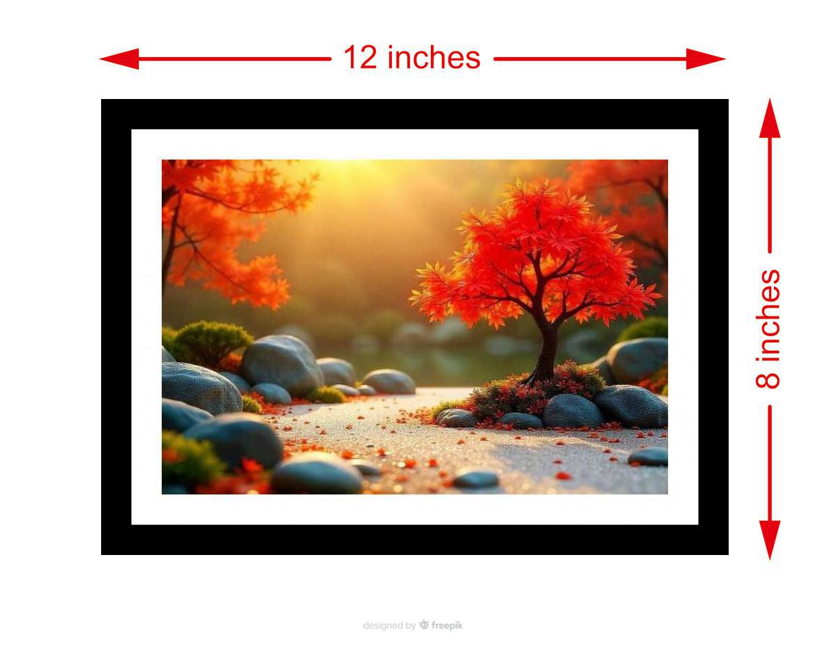 A masterpiece! Golden sunlight warms a vibrant maple and smooth stones, capturing autumn's serene beauty. The colors are vibrant, the print is crisp, and the detail is breathtaking. The reprint boasts striking composition, faithfully capturing the portrait's beauty with impressive clarity. Versatile Decor: Ideal for enhancing the aesthetic appeal of living rooms and bedrooms Enhanced Durability: Weather-shield laminated digital print for lasting vibrancy and protection Premium Framing: Constructed with a high-quality, durable fiber frame for long-term stability Precise Dimensions: 30 cm x 20 cm x 1 cm