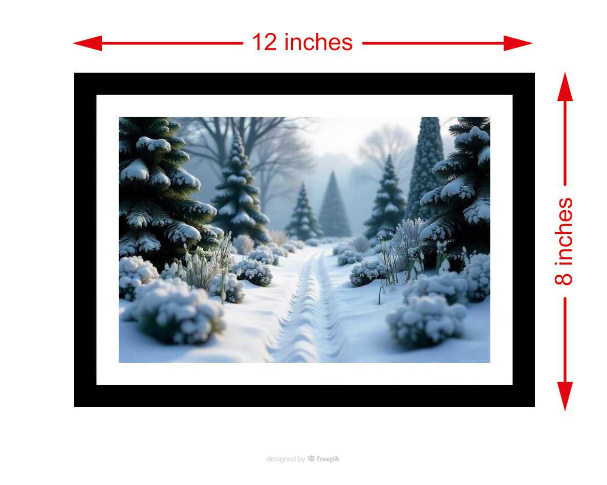 A stunning winter scene: Snowy path cuts through an evergreen wonderland, pure magic! Colors pop and the clarity is breathtaking, bringing the photo vividly back to life. The reprint's stunning composition beautifully captures the photo's original artistry, a true visual delight. Versatile Decor: Ideal for enhancing the aesthetic appeal of living rooms and bedrooms Enhanced Durability: Weather-shield laminated digital print for lasting vibrancy and protection Premium Framing: Constructed with a high-quality, durable fiber frame for long-term stability Precise Dimensions: 30 cm x 20 cm x 1 cm