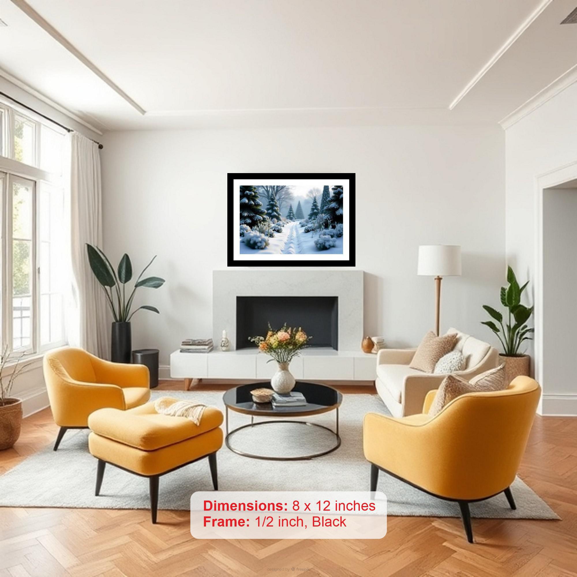 Winter Wonderland Path - Snowy Evergreens. Wall Art, Interior Accents, Framing Solutions, Residential/Commercial Decor, Premium Gifts | Size: 8 x 12 inches