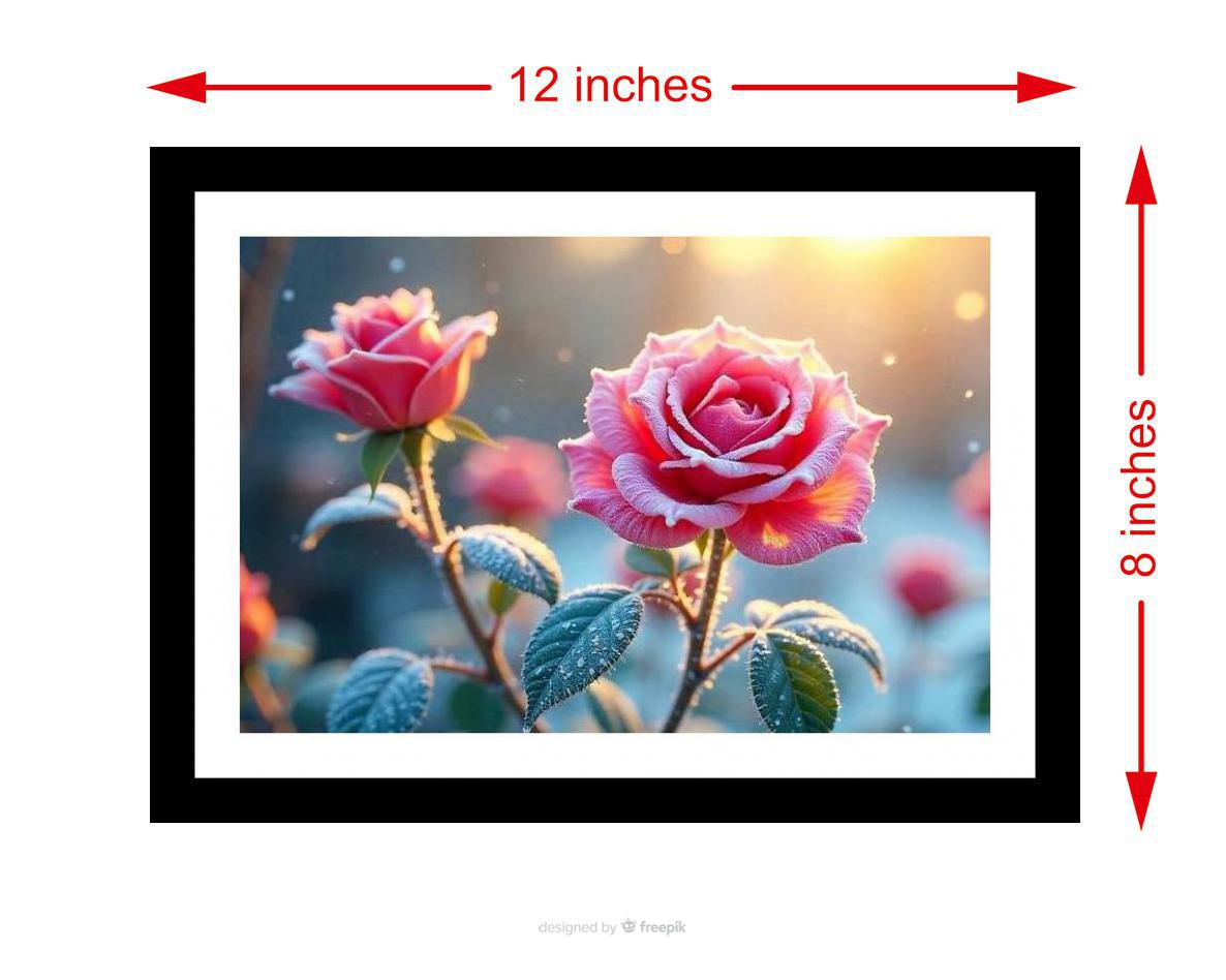 A breathtaking capture of frozen roses bathed in morning sun, showcasing nature's delicate beauty and resilience. Colors pop, details crisp - a vibrant recreation of a beautiful photo. The reprint's composition is stunning! The sharp details and balanced elements make it a visual masterpiece. Versatile Decor: Ideal for enhancing the aesthetic appeal of living rooms and bedrooms Enhanced Durability: Weather-shield laminated digital print for lasting vibrancy and protection Premium Framing: Constructed with a high-quality, durable fiber frame for long-term stability Precise Dimensions: 30 cm x 20 cm x 1 cm