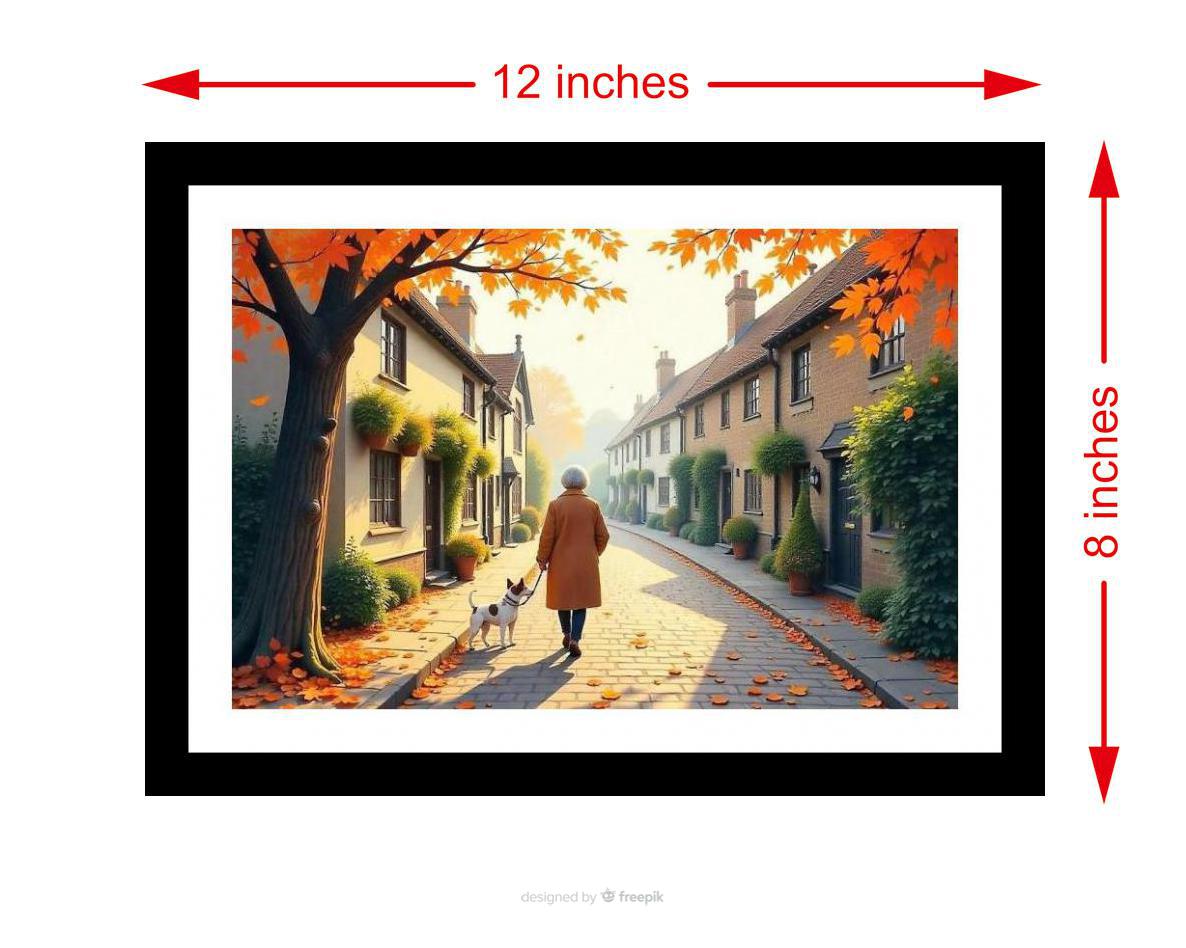 A delightful autumnal scene: a woman and her dog enjoy a charming, vibrant street. Colors are vibrant, print is sharp, capturing the portrait's original beauty perfectly. The digital reprint boasts a striking composition, faithfully capturing the portrait's original beauty. Versatile Decor: Ideal for enhancing the aesthetic appeal of living rooms and bedrooms Enhanced Durability: Weather-shield laminated digital print for lasting vibrancy and protection Premium Framing: Constructed with a high-quality, durable fiber frame for long-term stability Precise Dimensions: 30 cm x 20 cm x 1 cm