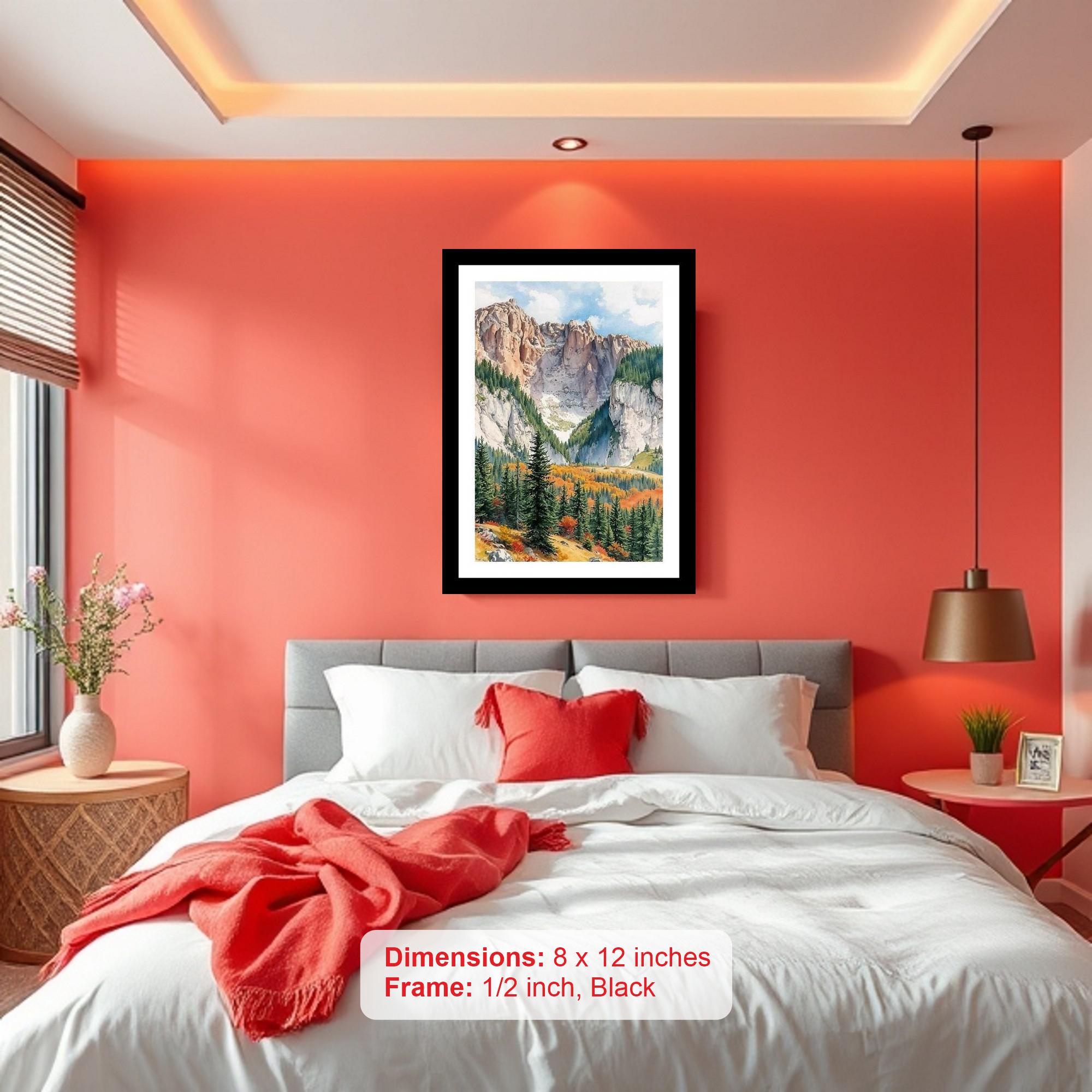 Capture the serene beauty of nature with our exquisitely framed digital reprint of a captivating mountain landscape painting. This stunning piece of art transports you to the foot of a majestic mountain, where lush greenery carpets the foreground, creating a vibrant contrast against the towering peaks in the distance. The artist's masterful brushstrokes and carefully chosen color palette evoke a sense of tranquility and awe, bringing the grandeur of the natural world into your home. Every detail, from the delicate textures of the foliage to the subtle variations in the mountain's rugged terrain, has been meticulously reproduced to capture the essence of the original artwork. Printed on high-quality archival paper with fade-resistant inks, this digital reprint ensures lasting vibrancy and clarity for years to come. Encased in an elegant and durable frame, this artwork is ready to hang and instantly elevate any living space. Whether you're looking to add a touch of natural beauty to your living room, bedroom, office, or entryway, this framed mountain landscape is a perfect choice. Its timeless appeal and calming presence make it an ideal focal point, sparking conversation and inspiring a sense of peace and wonder. Bring the breathtaking beauty of the mountains into your life and create a soothing atmosphere with this exceptional piece of framed art, a visual escape to the heart of nature's splendor, perfect for nature lovers and art enthusiasts alike.