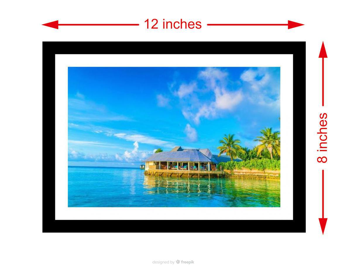 Picture-perfect paradise! Turquoise water, swaying palms, and a luxurious bungalow under a bright blue sky. The reprint explodes with vibrant color and stunning detail, a true testament to the original photo's beauty! The reprint boasts a striking composition, beautifully rendering the original photograph's artistry with digital precision. Versatile Decor: Ideal for enhancing the aesthetic appeal of living rooms and bedrooms Enhanced Durability: Weather-shield laminated digital print for lasting vibrancy and protection Premium Framing: Constructed with a high-quality, durable fiber frame for long-term stability Precise Dimensions: 30 cm x 20 cm x 1 cm