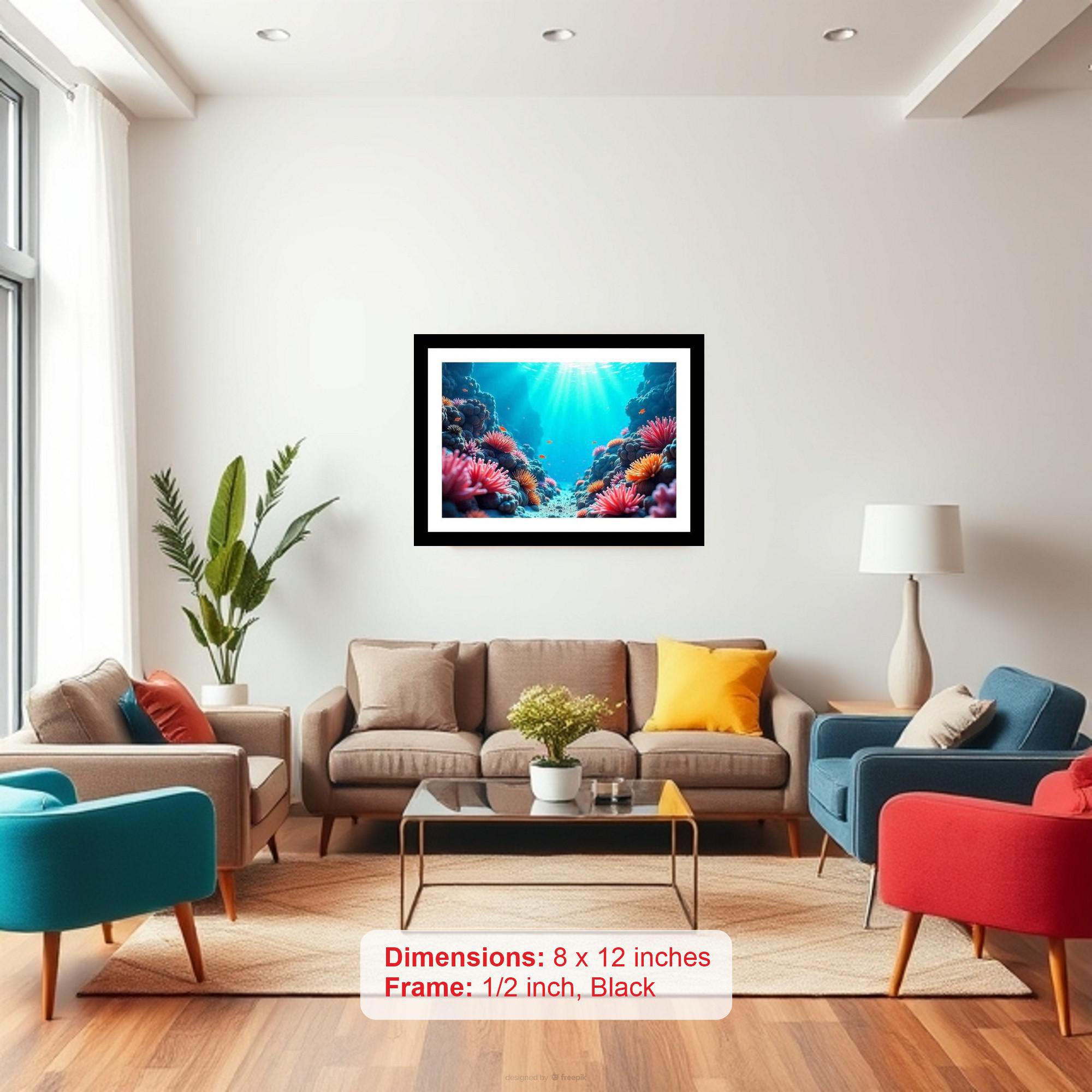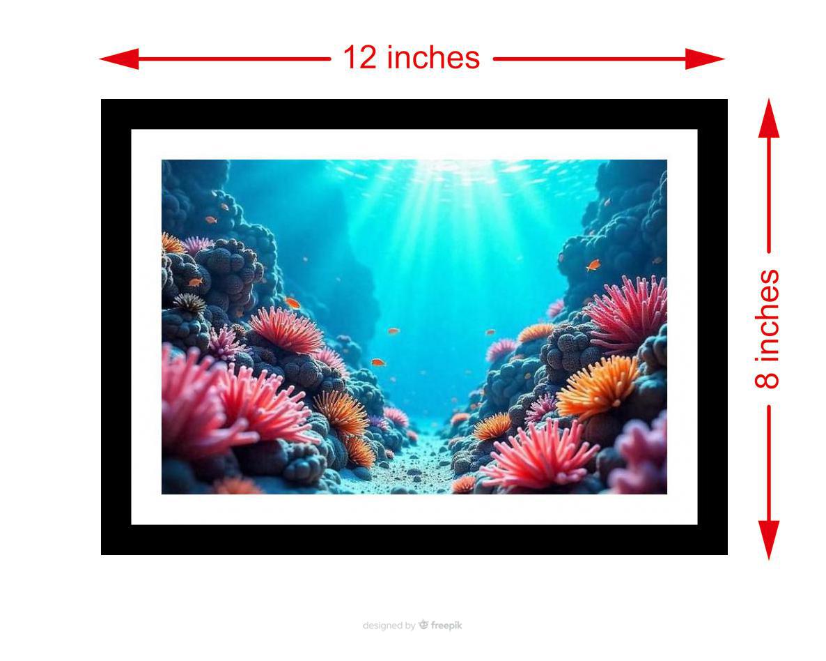 Sunlit ocean bursts with life! Vibrant coral reefs create a breathtaking underwater Eden. Colors pop, details crisp - the photo's beauty is brilliantly resurrected. The reprint's composition is stunning! Colors pop and details shine, breathing new life into a classic photo. Versatile Decor: Ideal for enhancing the aesthetic appeal of living rooms and bedrooms Enhanced Durability: Weather-shield laminated digital print for lasting vibrancy and protection Premium Framing: Constructed with a high-quality, durable fiber frame for long-term stability Precise Dimensions: 30 cm x 20 cm x 1 cm