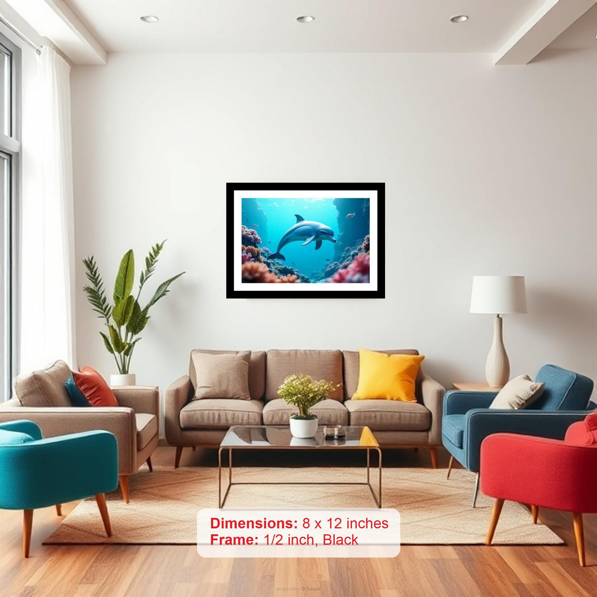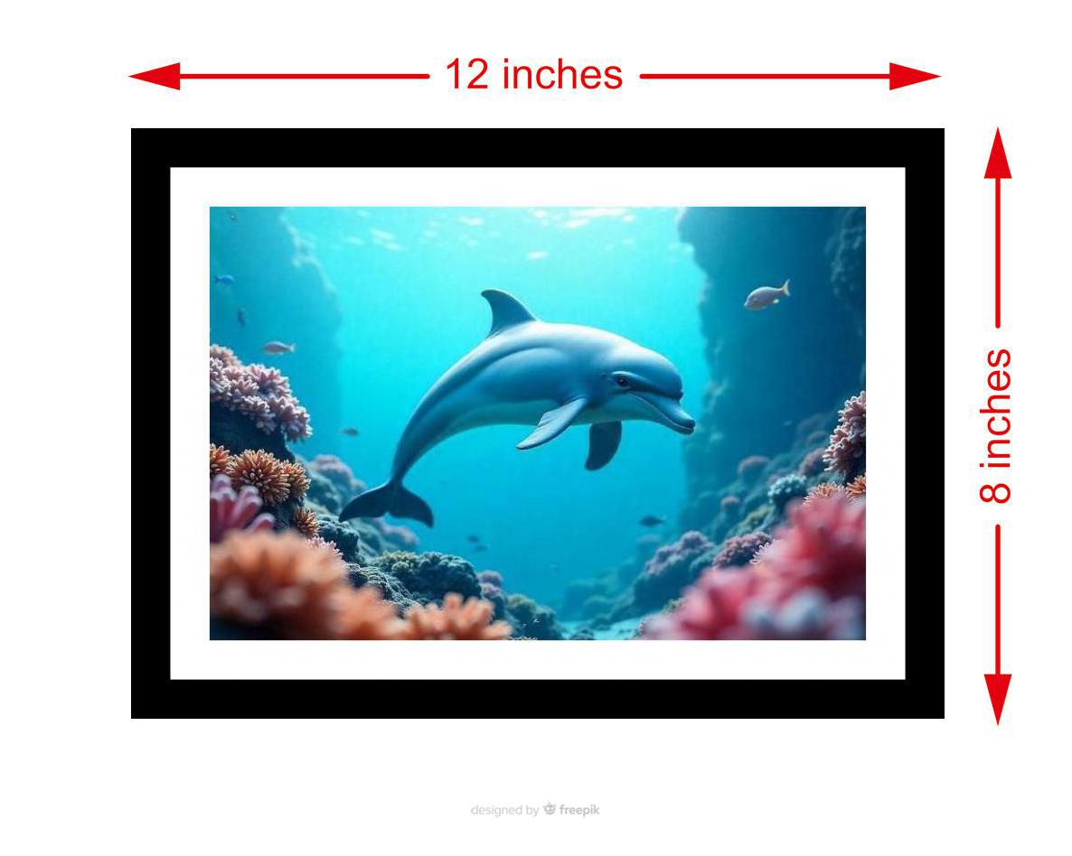 A stunning photo of a dolphin dances through a kaleidoscope of coral, showcasing nature's vibrant beauty. Colors are vibrant, print is sharp and detailed, a true masterpiece reborn. The reprint's striking composition breathed new life into the photo, beautifully balancing light and shadow. Versatile Decor: Ideal for enhancing the aesthetic appeal of living rooms and bedrooms Enhanced Durability: Weather-shield laminated digital print for lasting vibrancy and protection Premium Framing: Constructed with a high-quality, durable fiber frame for long-term stability Precise Dimensions: 30 cm x 20 cm x 1 cm