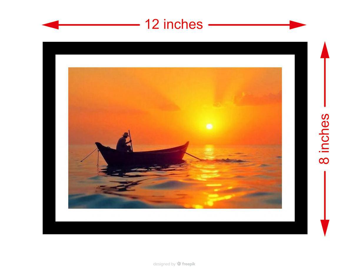 Stunning silhouette! A lone fisherman rows into a golden sunset, a breathtakingly serene and picturesque moment. Colors pop, details are crisp - a true visual feast. The reprint's striking composition breathes new life into the photograph, revealing its inherent beauty. Versatile Decor: Ideal for enhancing the aesthetic appeal of living rooms and bedrooms Enhanced Durability: Weather-shield laminated digital print for lasting vibrancy and protection Premium Framing: Constructed with a high-quality, durable fiber frame for long-term stability Precise Dimensions: 30 cm x 20 cm x 1 cm