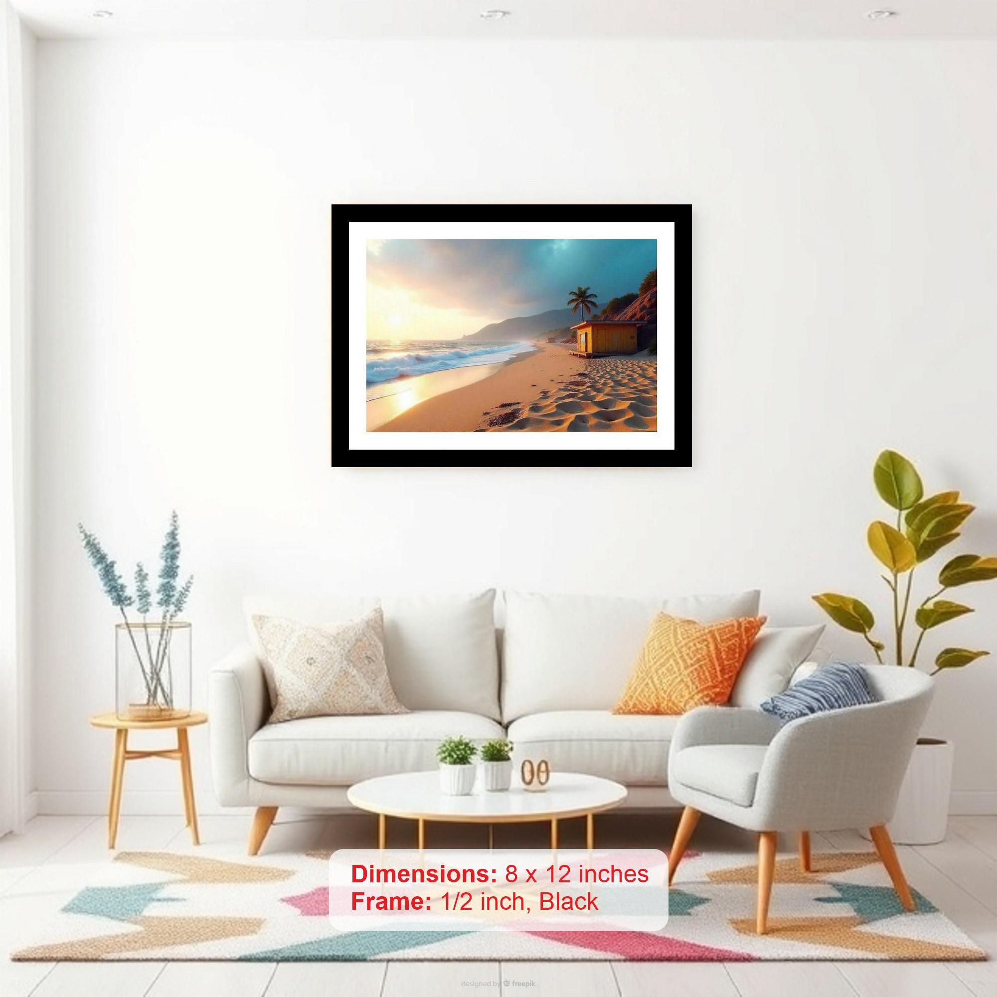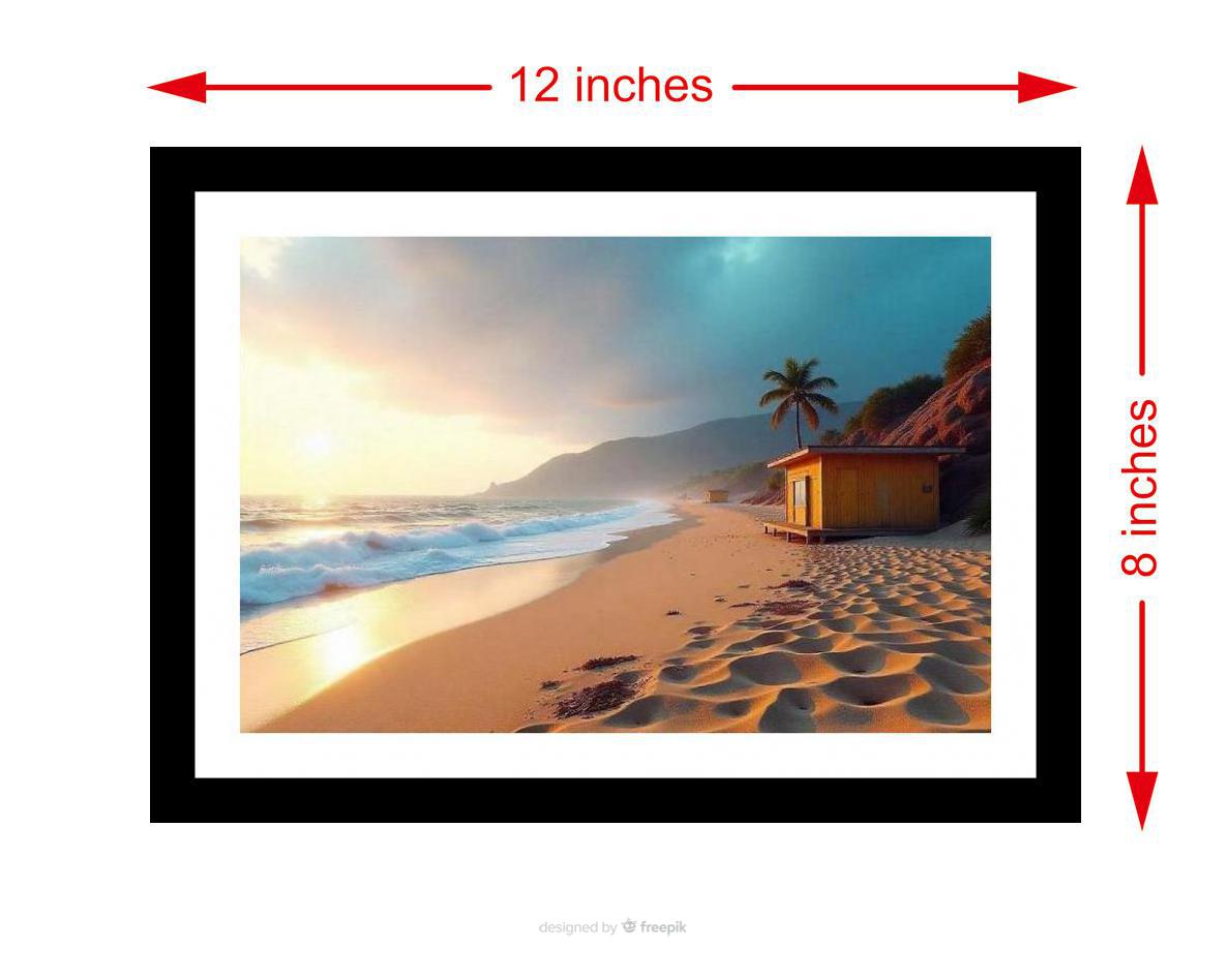 Golden sunset bathes a tropical beach paradise, crowned by a solitary palm. Pure bliss. The reprint's vibrant colors and crisp detail truly capture the photograph's original beauty. The digital reprint boasts a strikingly composed photograph; its artistic elements shine with renewed clarity. Versatile Decor: Ideal for enhancing the aesthetic appeal of living rooms and bedrooms Enhanced Durability: Weather-shield laminated digital print for lasting vibrancy and protection Premium Framing: Constructed with a high-quality, durable fiber frame for long-term stability Precise Dimensions: 30 cm x 20 cm x 1 cm