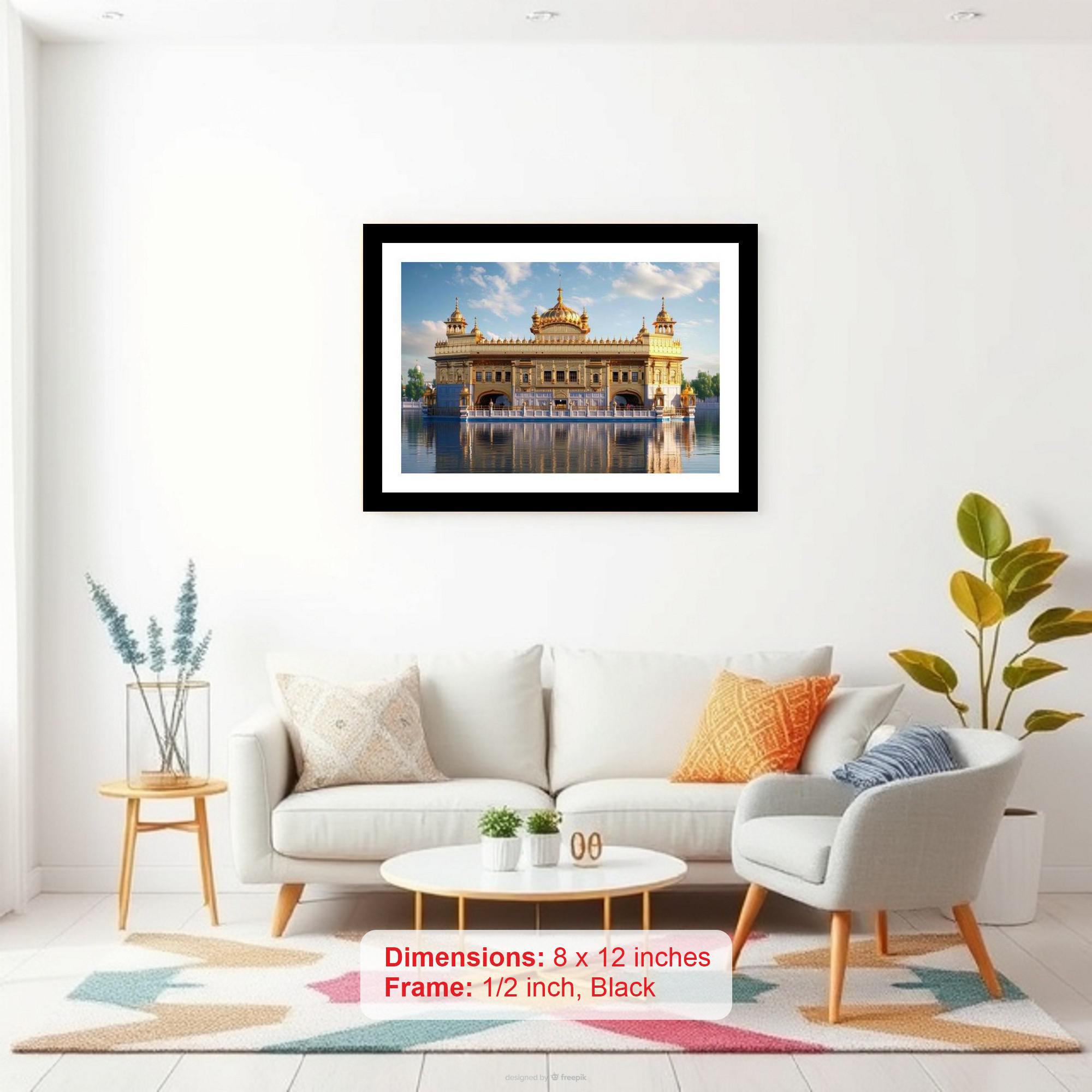 Golden Temple Reflection: Tranquil Waters, Timeless Beauty. Wall Art, Interior Accents, Framing Solutions, Residential/Commercial Decor, Premium Gifts | Size: 8 x 12 inches