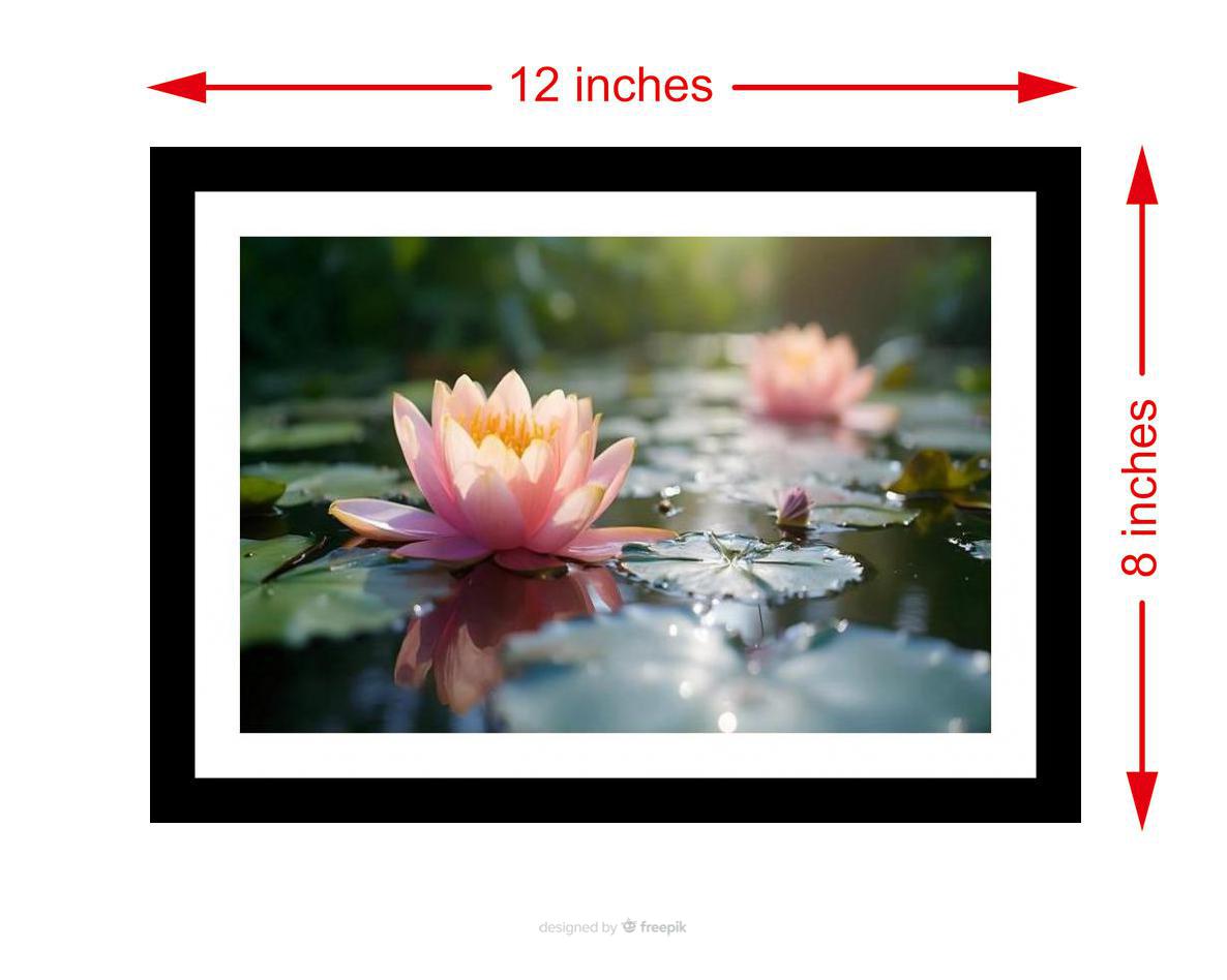 Sun-kissed pink water lilies bloom serenely on a calm pond, a picture of tranquil beauty. Colors pop, details sharp - the photo's beauty is brilliantly resurrected. The reprint's stunning composition breathes new life into a timeless image, beautifully captured for modern eyes. Versatile Decor: Ideal for enhancing the aesthetic appeal of living rooms and bedrooms Enhanced Durability: Weather-shield laminated digital print for lasting vibrancy and protection Premium Framing: Constructed with a high-quality, durable fiber frame for long-term stability Precise Dimensions: 30 cm x 20 cm x 1 cm