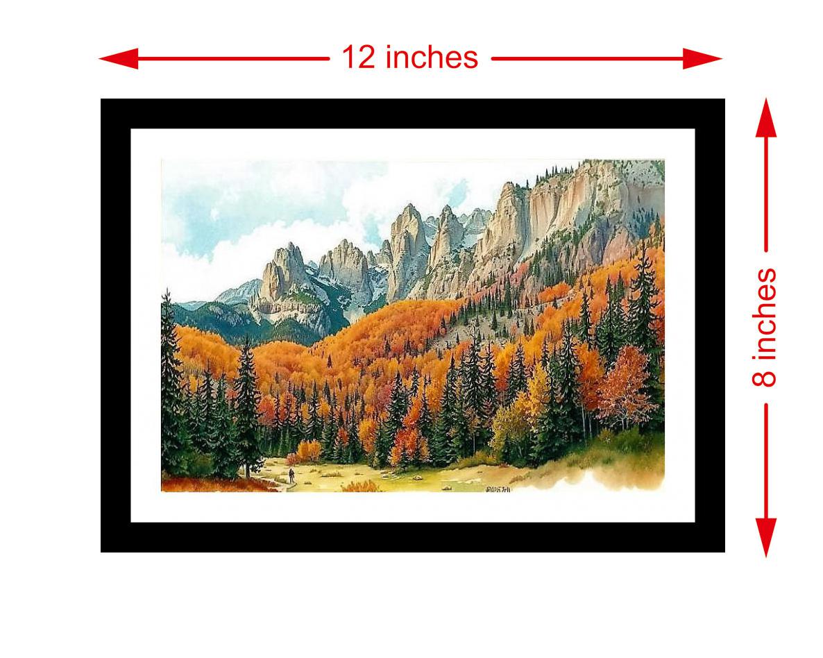 A stunning mountain vista, where stony peaks meet lush foothills in a breathtaking display of nature's artistry. The reprint's colors are vibrant, and the print quality captures the original portrait's beauty perfectly. The portrait's digital reprint boasts a stunning composition, breathing new life into its timeless beauty. Versatile Decor: Ideal for enhancing the aesthetic appeal of living rooms and bedrooms Enhanced Durability: Weather-shield laminated digital print for lasting vibrancy and protection Premium Framing: Constructed with a high-quality, durable fiber frame for long-term stability Precise Dimensions: 30 cm x 20 cm x 1 cm