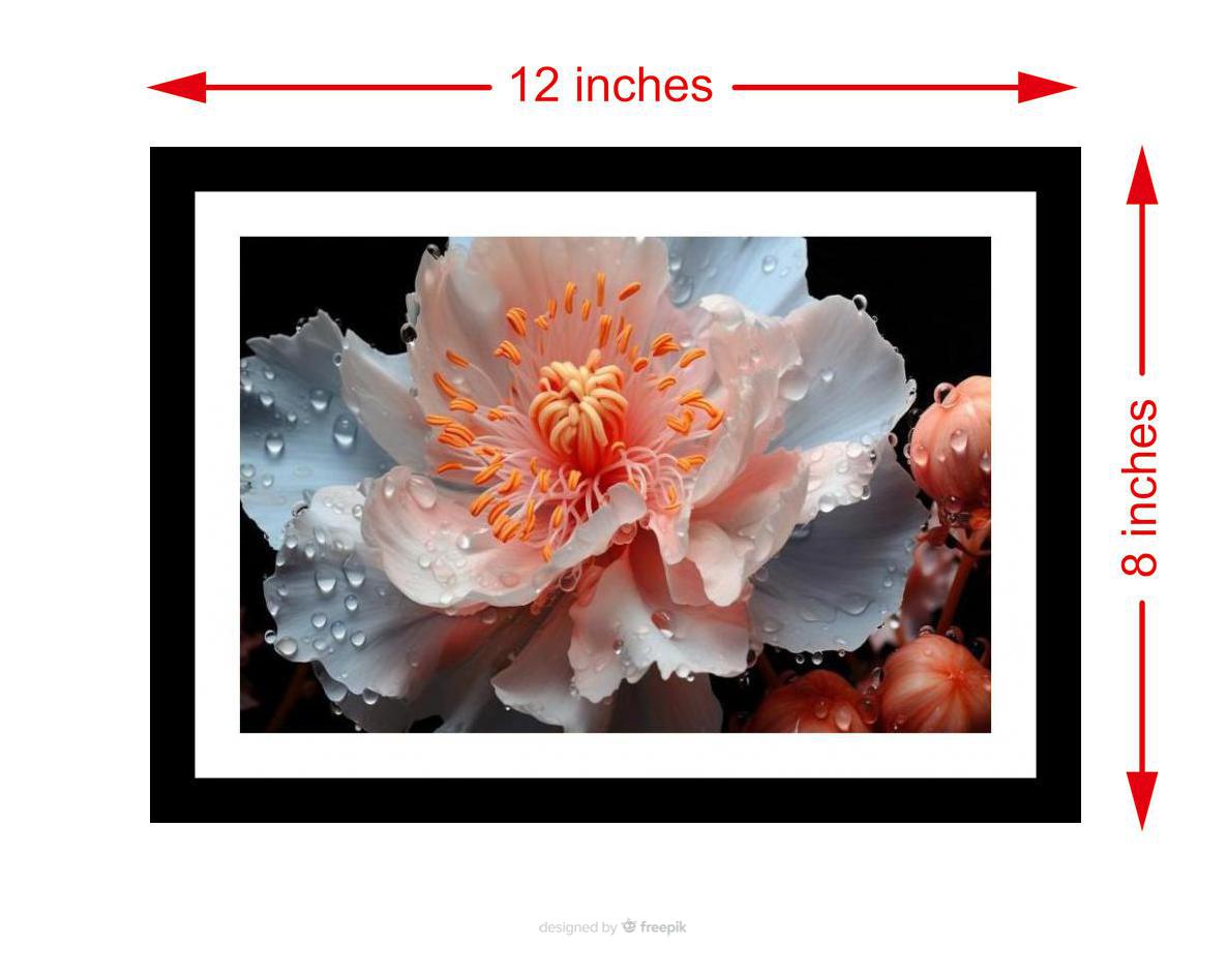 A delicate flower, jeweled with raindrops, bursts with vibrant, breathtaking beauty. Colors pop, details are crisp - a true testament to the original photograph's beauty. The digital reprint boasts a striking composition, breathing new life into the photograph's original artistry. Versatile Decor: Ideal for enhancing the aesthetic appeal of living rooms and bedrooms Enhanced Durability: Weather-shield laminated digital print for lasting vibrancy and protection Premium Framing: Constructed with a high-quality, durable fiber frame for long-term stability Precise Dimensions: 30 cm x 20 cm x 1 cm