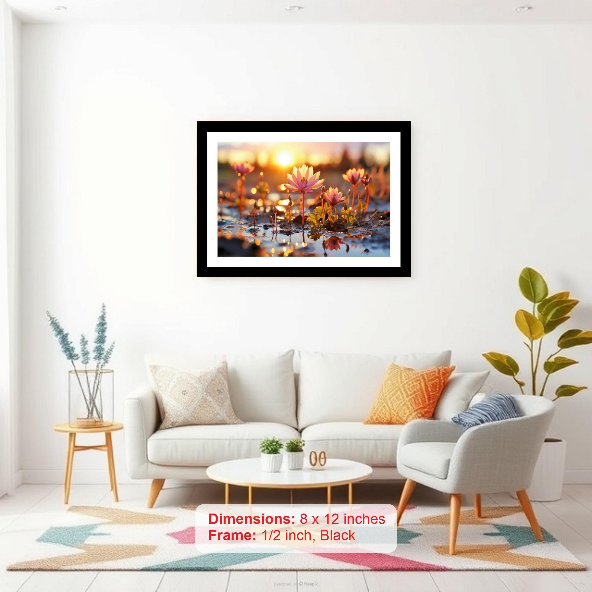 Sunset Blossom Reflections: Serene Puddle Art. Wall Art, Interior Accents, Framing Solutions, Residential/Commercial Decor, Premium Gifts | Size: 8 x 12 inches
