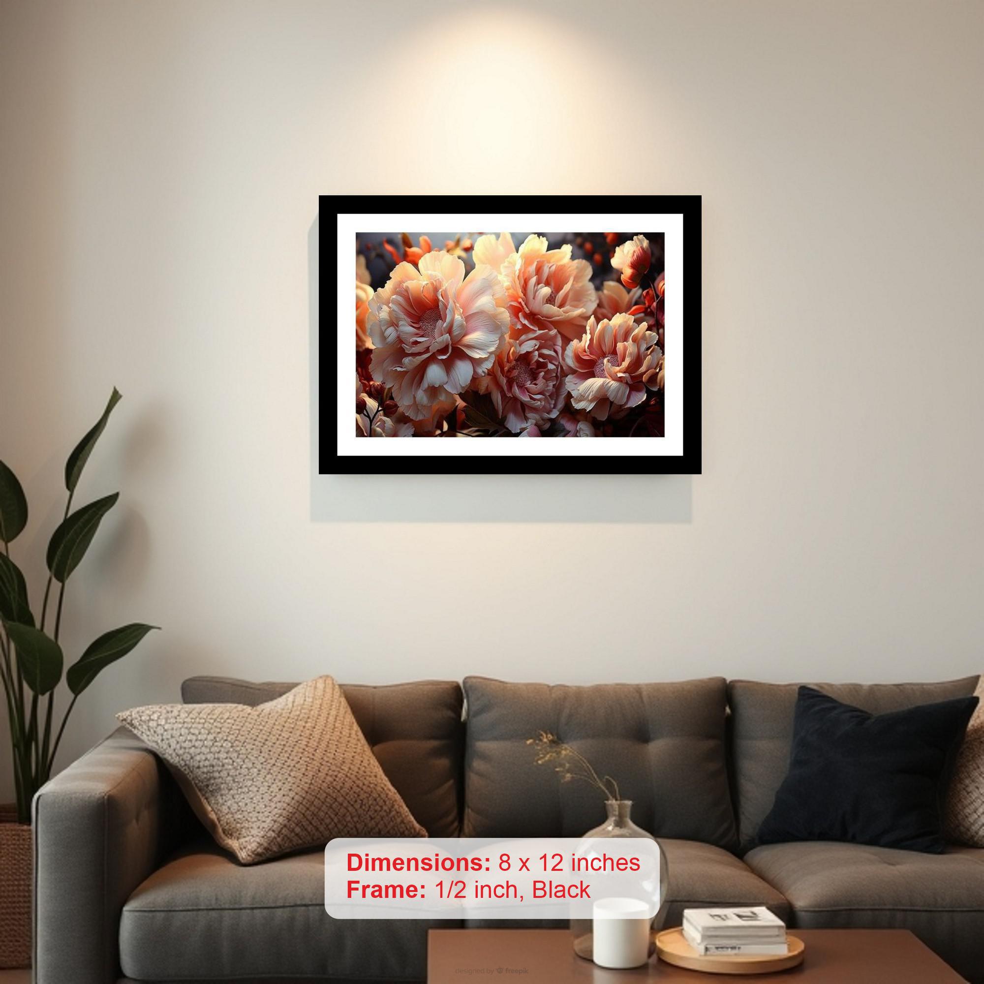 Capture timeless beauty with our vintage-inspired digital reprint, showcasing soft peach blossoms in radiant, golden light. Encased in an elegant black frame, this piece exudes classic charm and sophistication. The delicate blooms, bathed in a warm, luminous glow, create a serene and inviting atmosphere, perfect for adding a touch of grace to any room. This high-quality reprint faithfully captures the original photograph's detail and artistry, offering a lasting visual treasure.