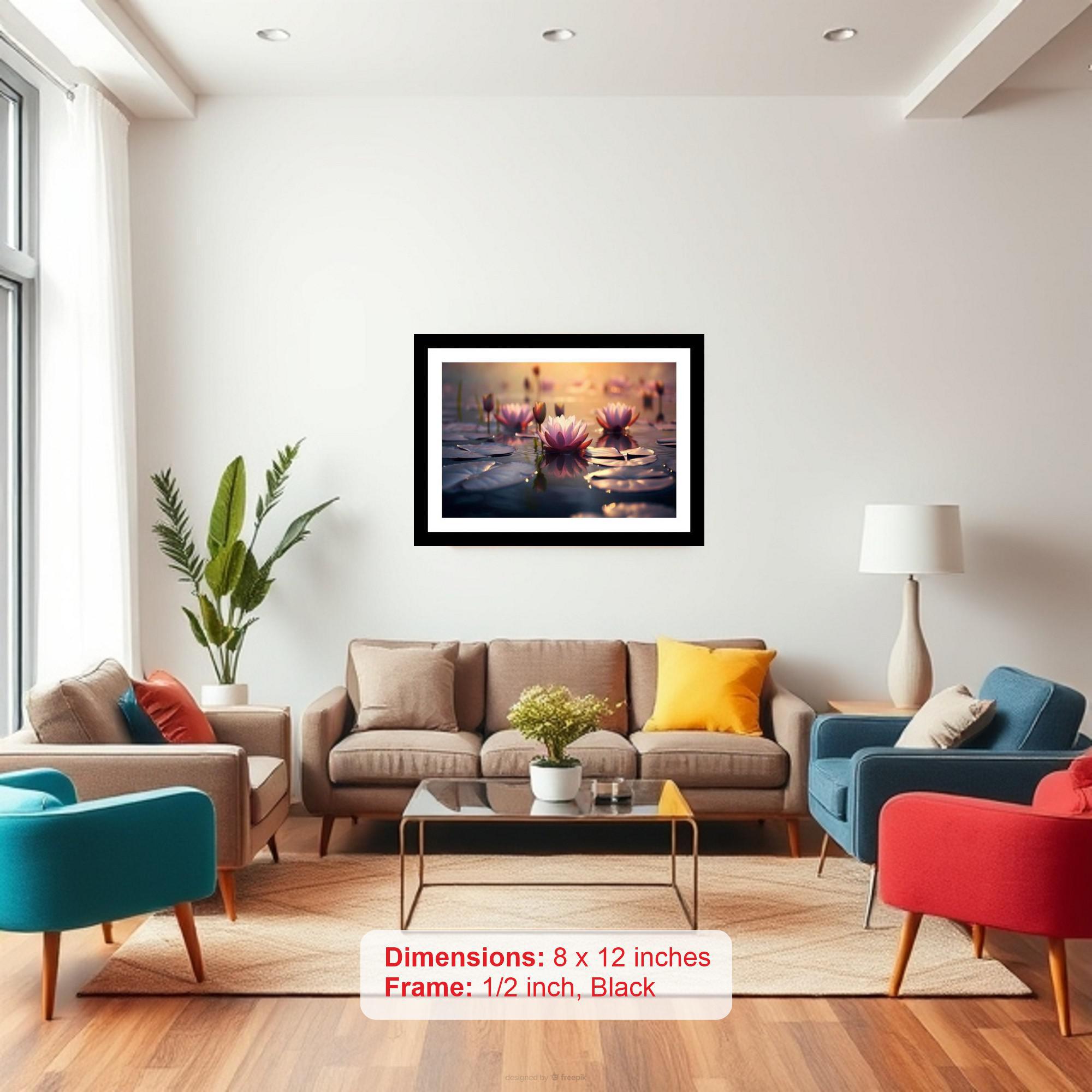 Serene Sunset Water Lilies Bloom - Reflective Tranquility. Wall Art, Interior Accents, Framing Solutions, Residential/Commercial Decor, Premium Gifts | Size: 8 x 12 inches