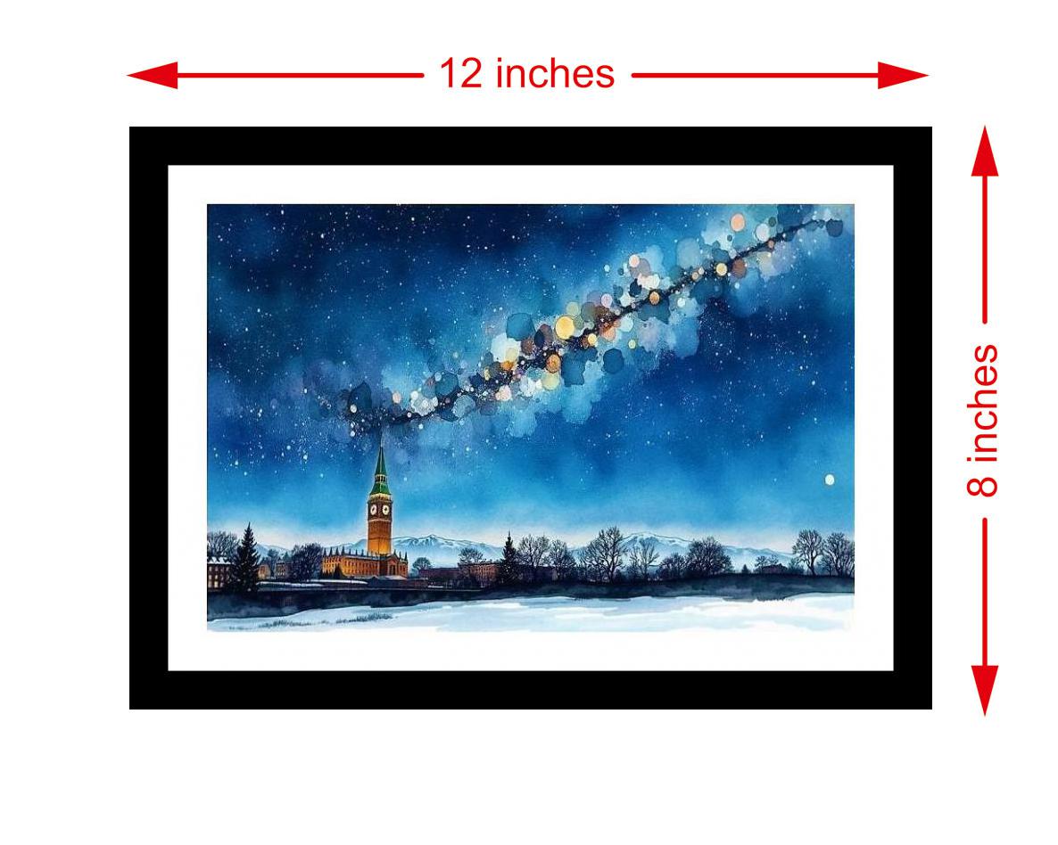 A stunning Victorian palace glows against a vibrant, snowy night sky, a breathtaking masterpiece! The colors are vibrant, the print is sharp, and the portrait's beauty is perfectly captured. The digital reprint boasts a striking composition, faithfully capturing the portrait's original beauty in stunning detail. Versatile Decor: Ideal for enhancing the aesthetic appeal of living rooms and bedrooms Enhanced Durability: Weather-shield laminated digital print for lasting vibrancy and protection Premium Framing: Constructed with a high-quality, durable fiber frame for long-term stability Precise Dimensions: 30 cm x 20 cm x 1 cm